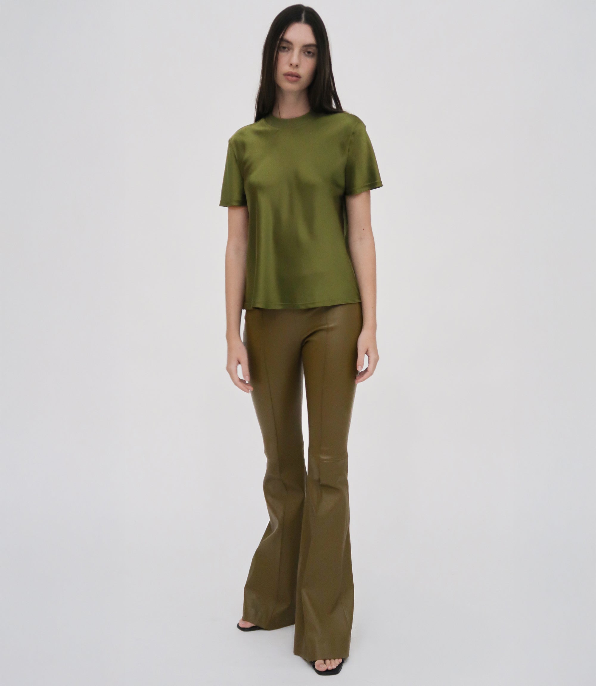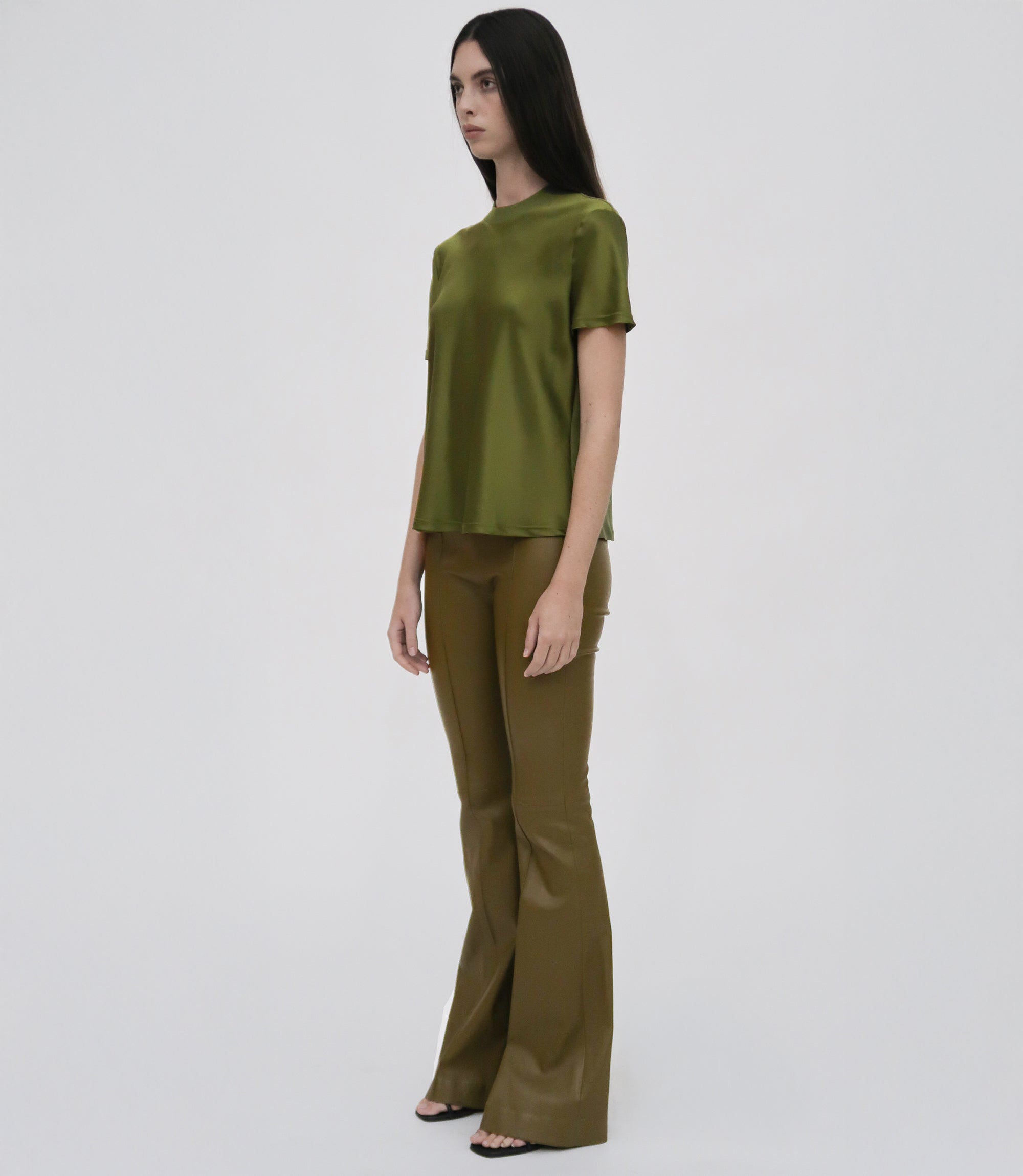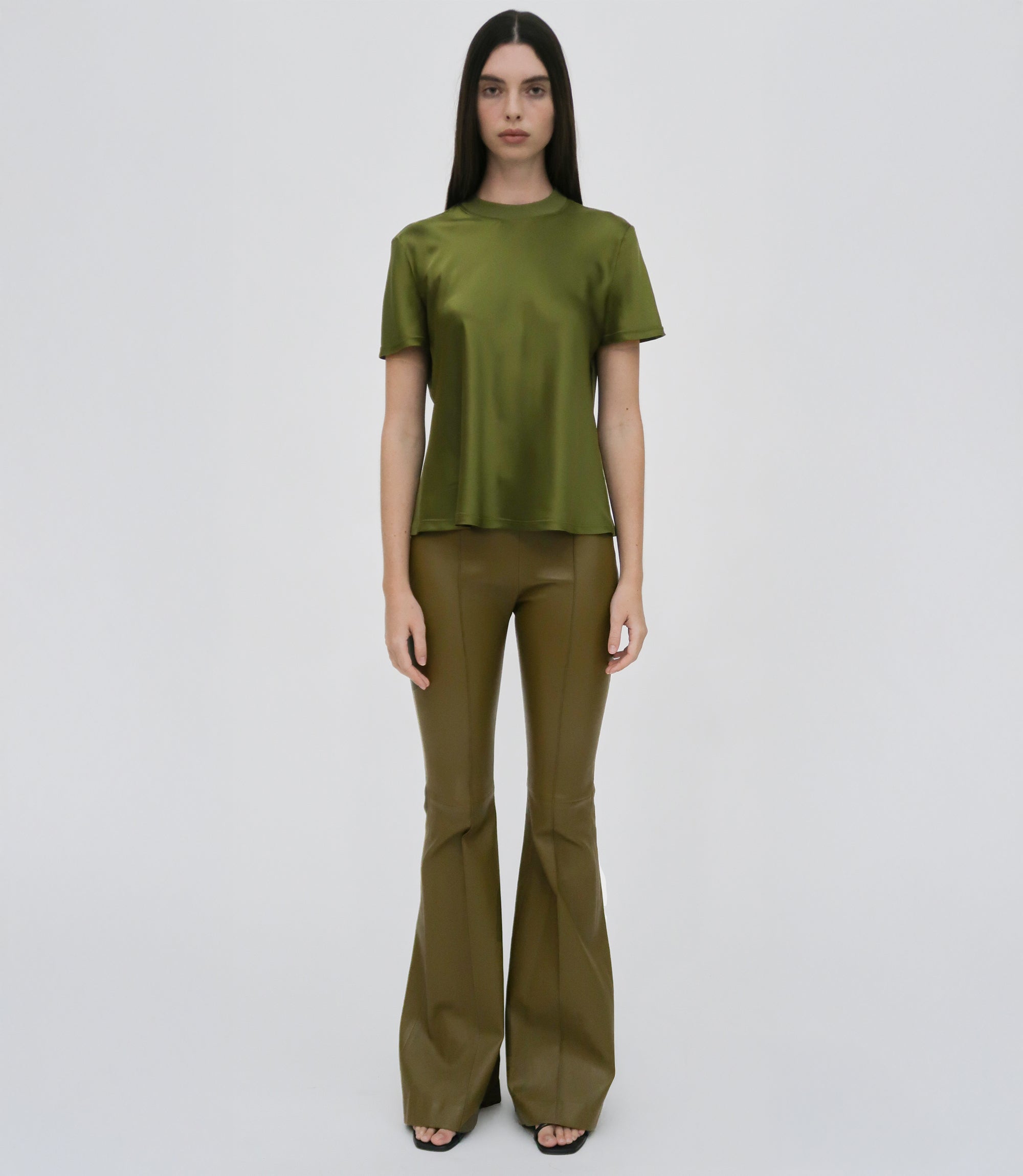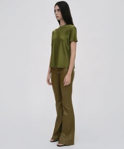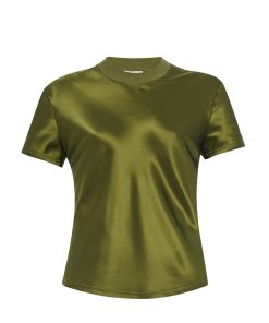 An exciting addition to the favorite Mercerized Cotton Rib Jersey capsule, the Combo T-Shirt pairs signature cotton rib with sumptuous Silk Satin. Cut to a generous bias-cut silhouette, it imparts new elegance to the otherwise classic crewneck style.