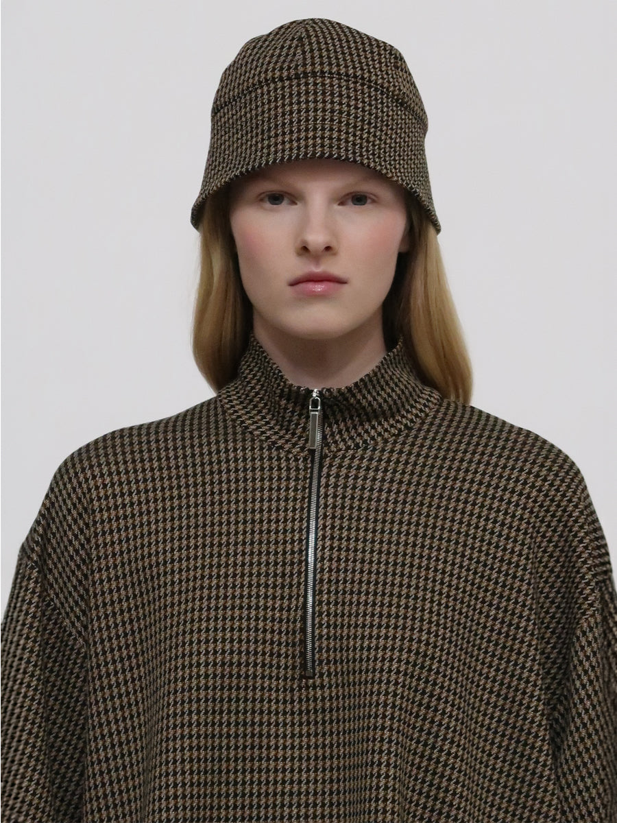 Updating Rosetta Getty’s signature hat silhouette, Pre-Fall 24’s Bucket Cap features a structured top with a short brim to create a cloche effect. Hinting at 1920’s styling and dressing, it features in the season’s exclusive Houndstooth Interlock Jacquard.