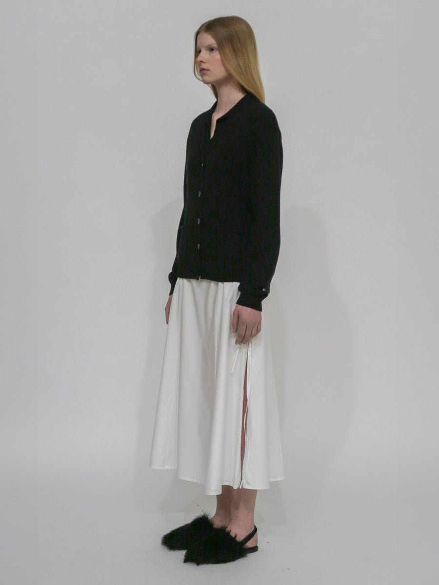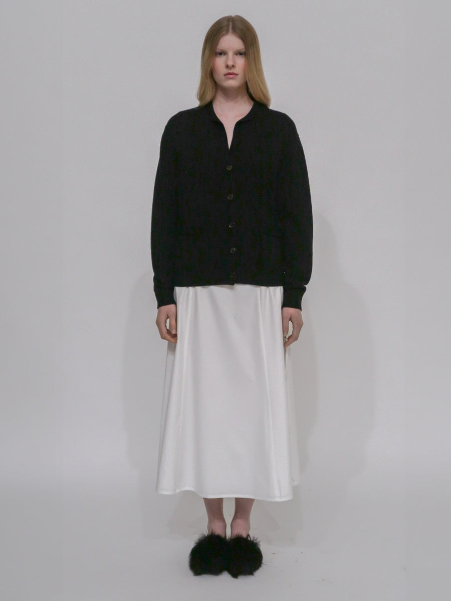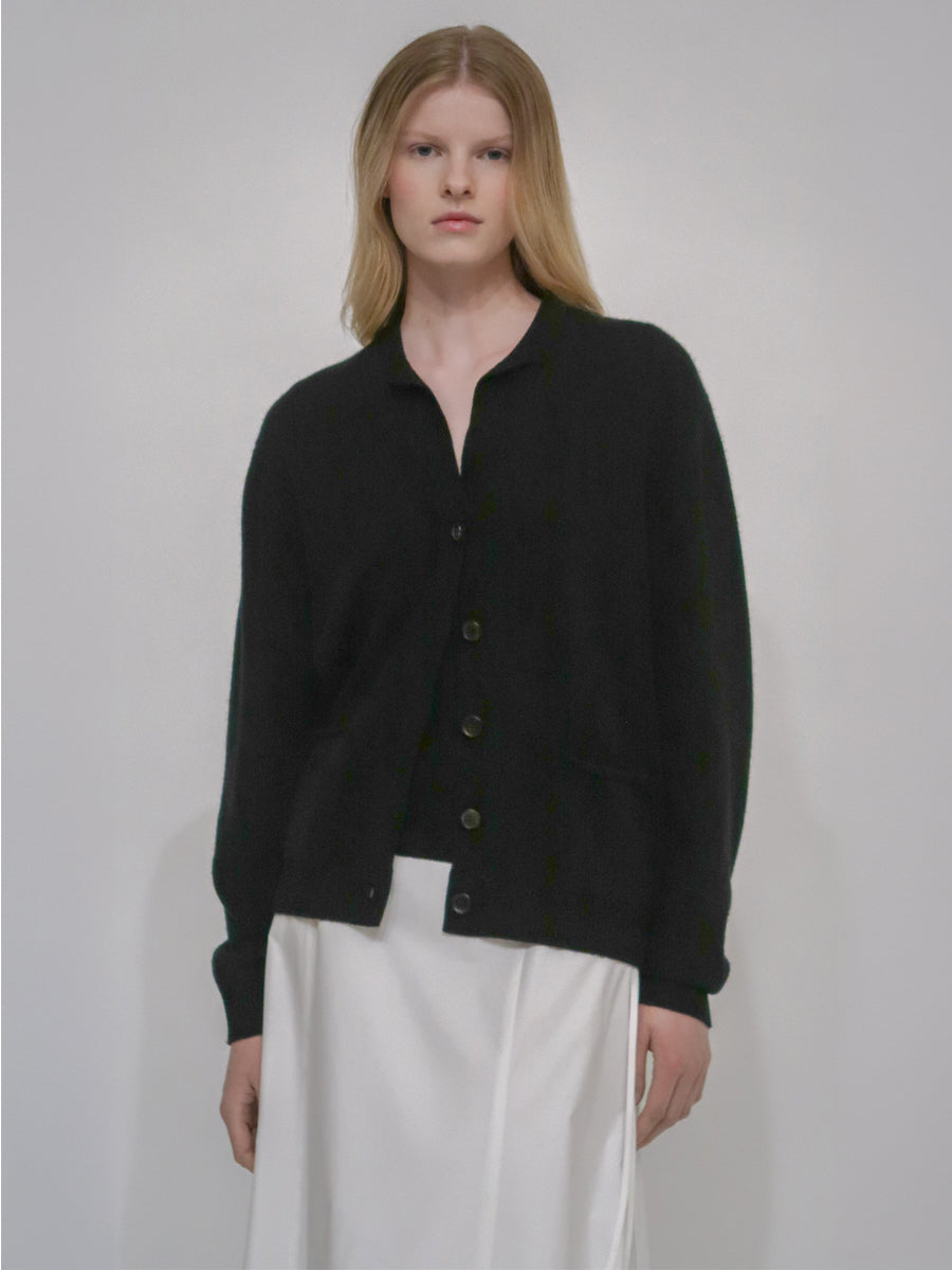 An archetypal style, this new knitted cardigan is crafted of Mercerized Wool Cashmere, a lightweight yarn with a plush combed hand and subtle sheen. It is designed with a lofty feel and features a relaxed v-neck silhouette that offers endless styling options for every season.
