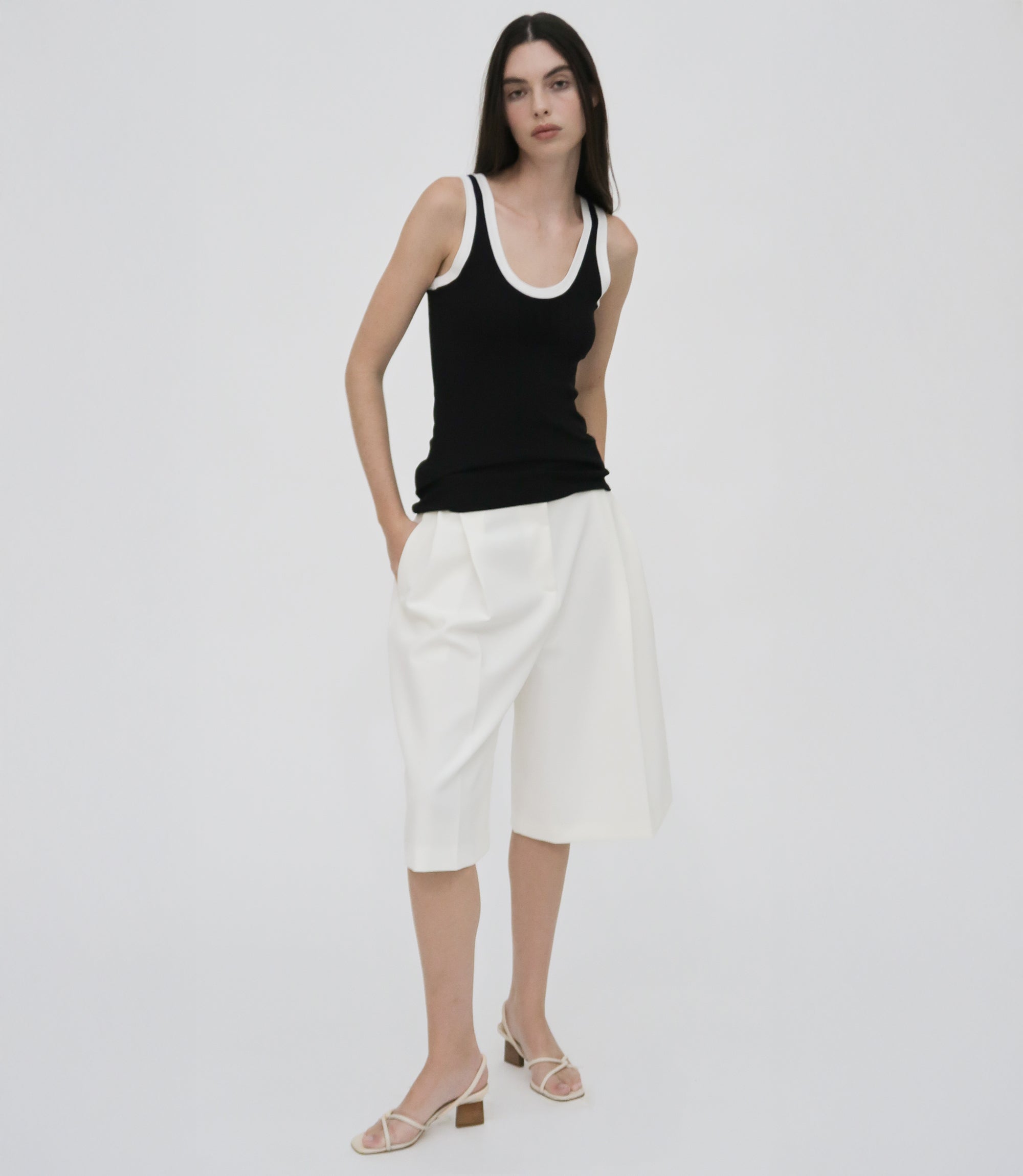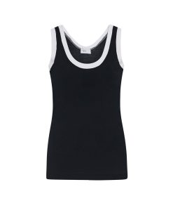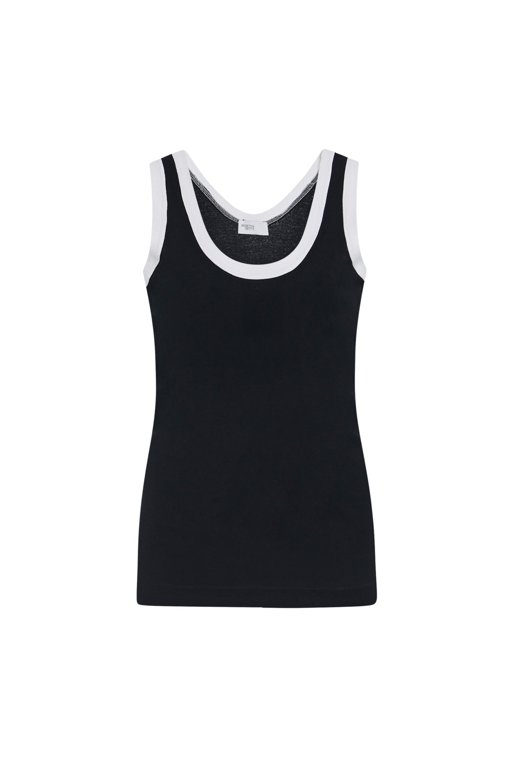 The ringer-style Contrast Rib Tank is designed with a versatile scoop neckline and brings a vintage- inspired design to our Mercerized Cotton Rib Jersey capsule with alternative binding for a pop finish. It has a fitted silhouette and is embellished with an embroidered logo signature just below the neck.