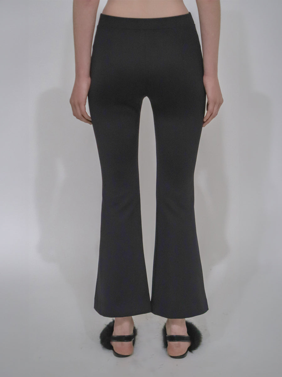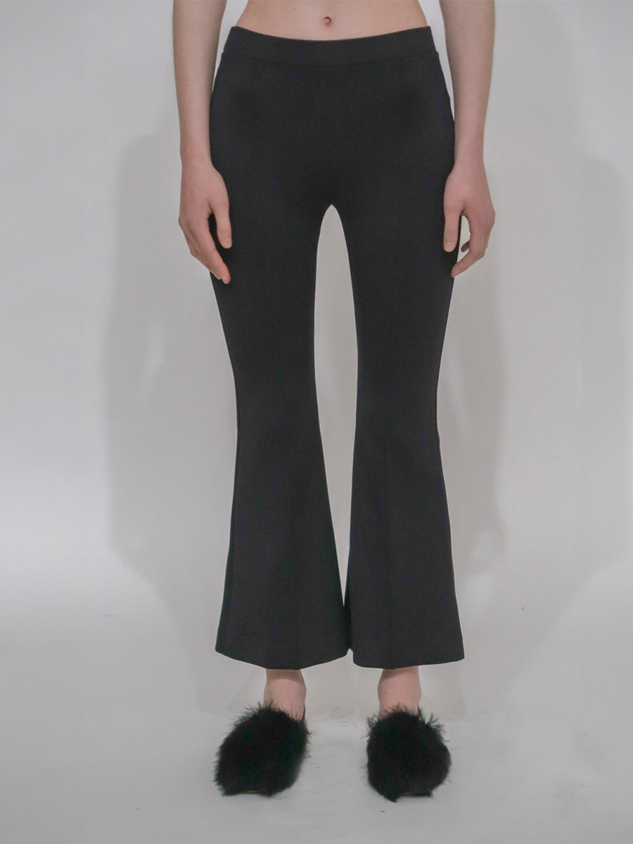 A go-to style in the Scuba Doubleknit, this signature pant is designed to flatter the body with a mid-rise and flared leg. The sleek fabric and elasticized waist impart natural ease to the cropped silhouette, finished with pintuck seaming to create a flattering line and an elongating effect.
