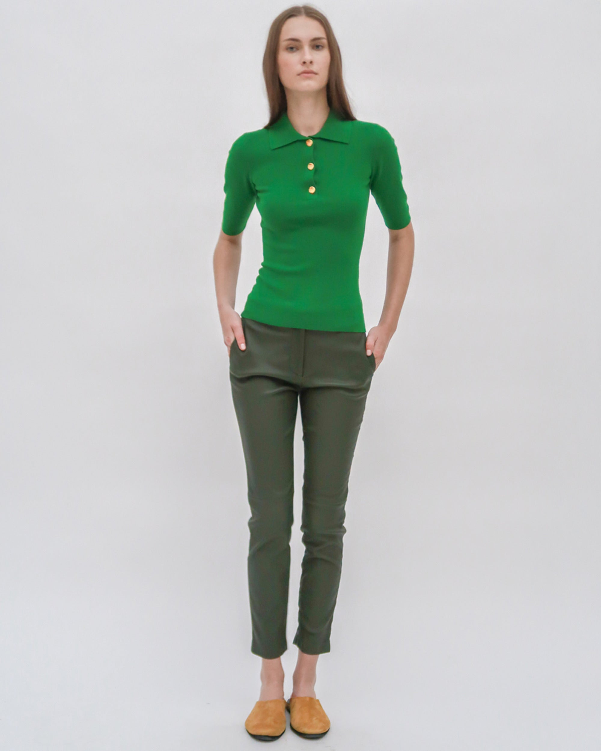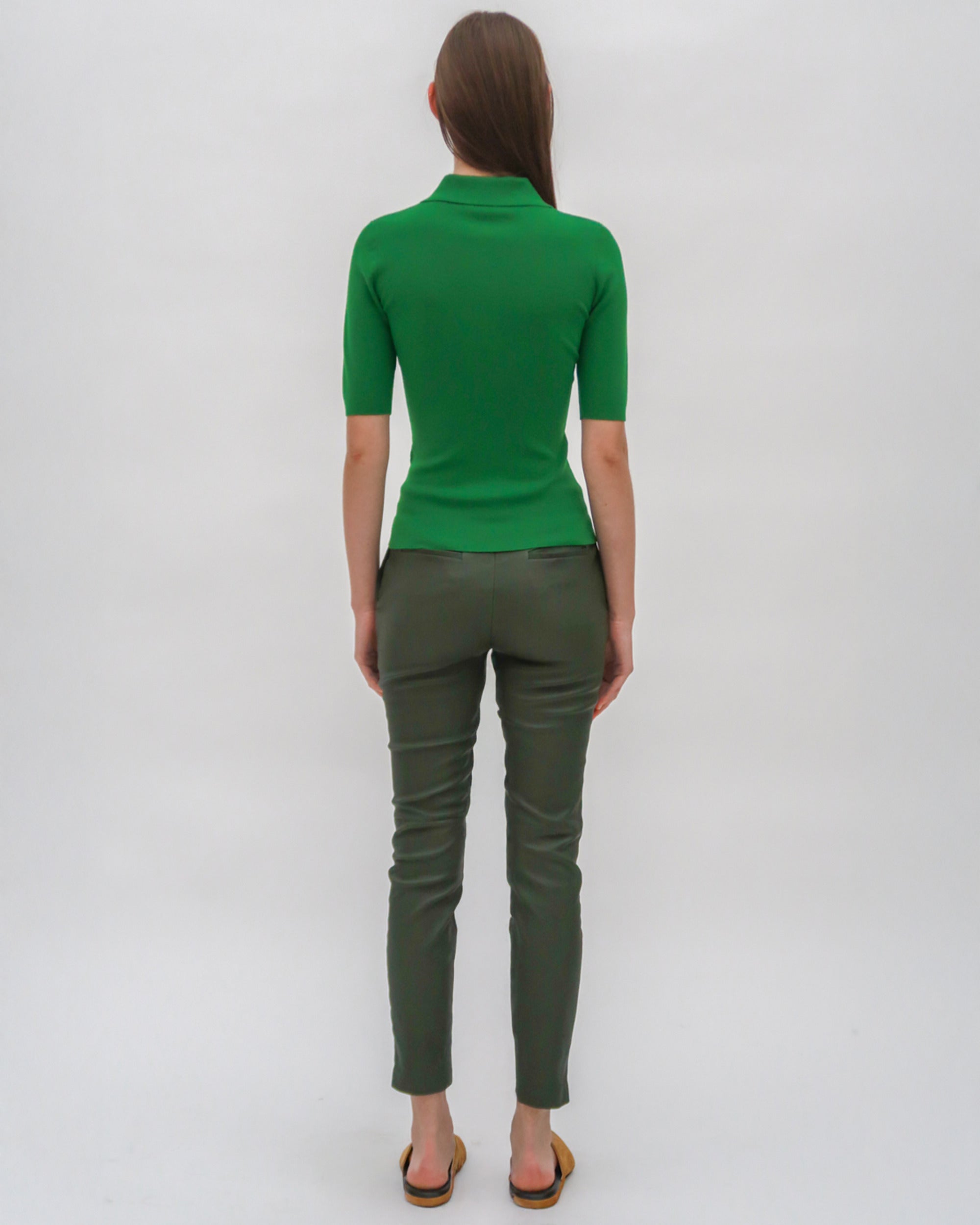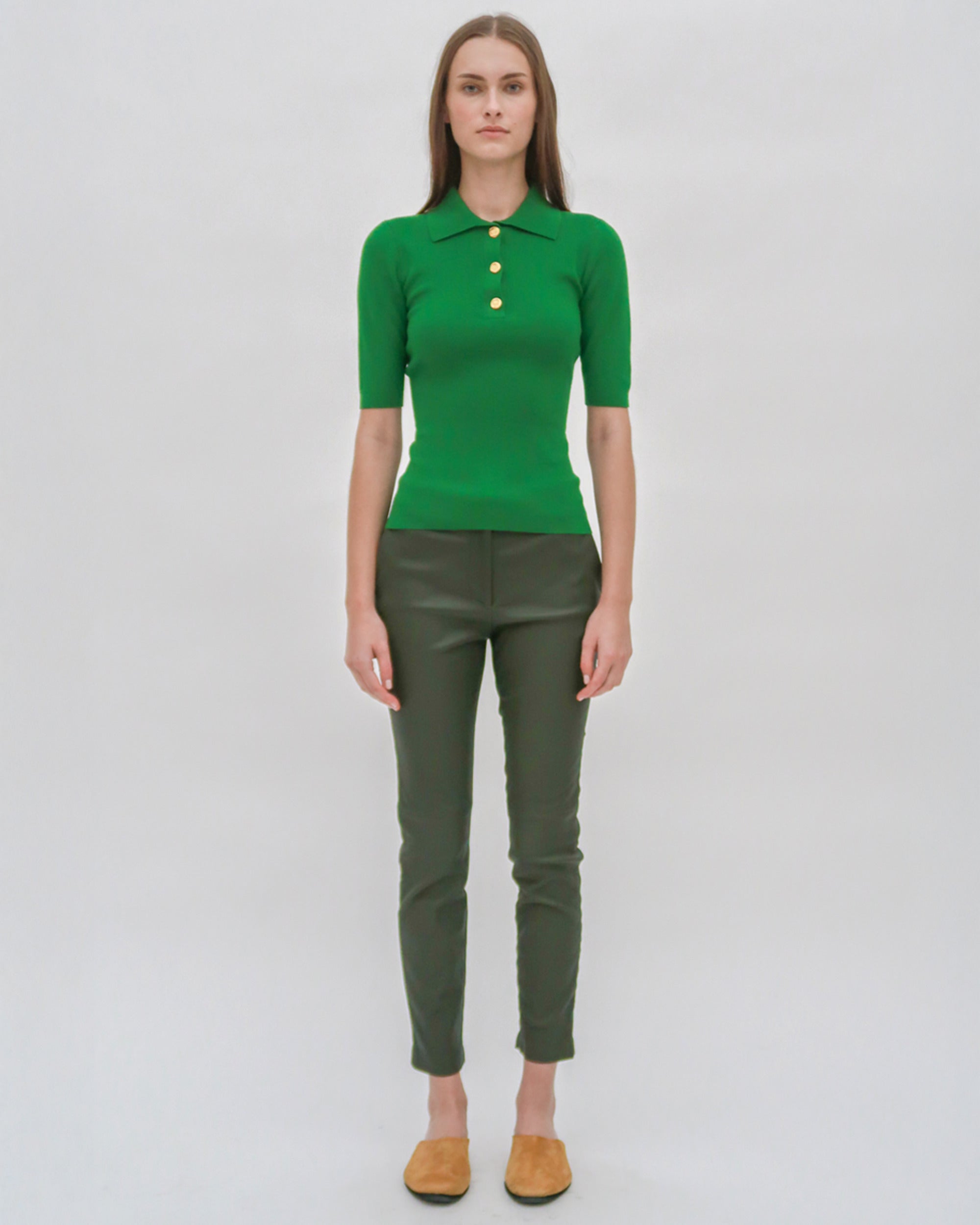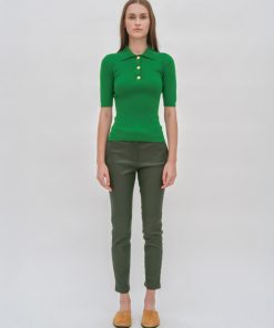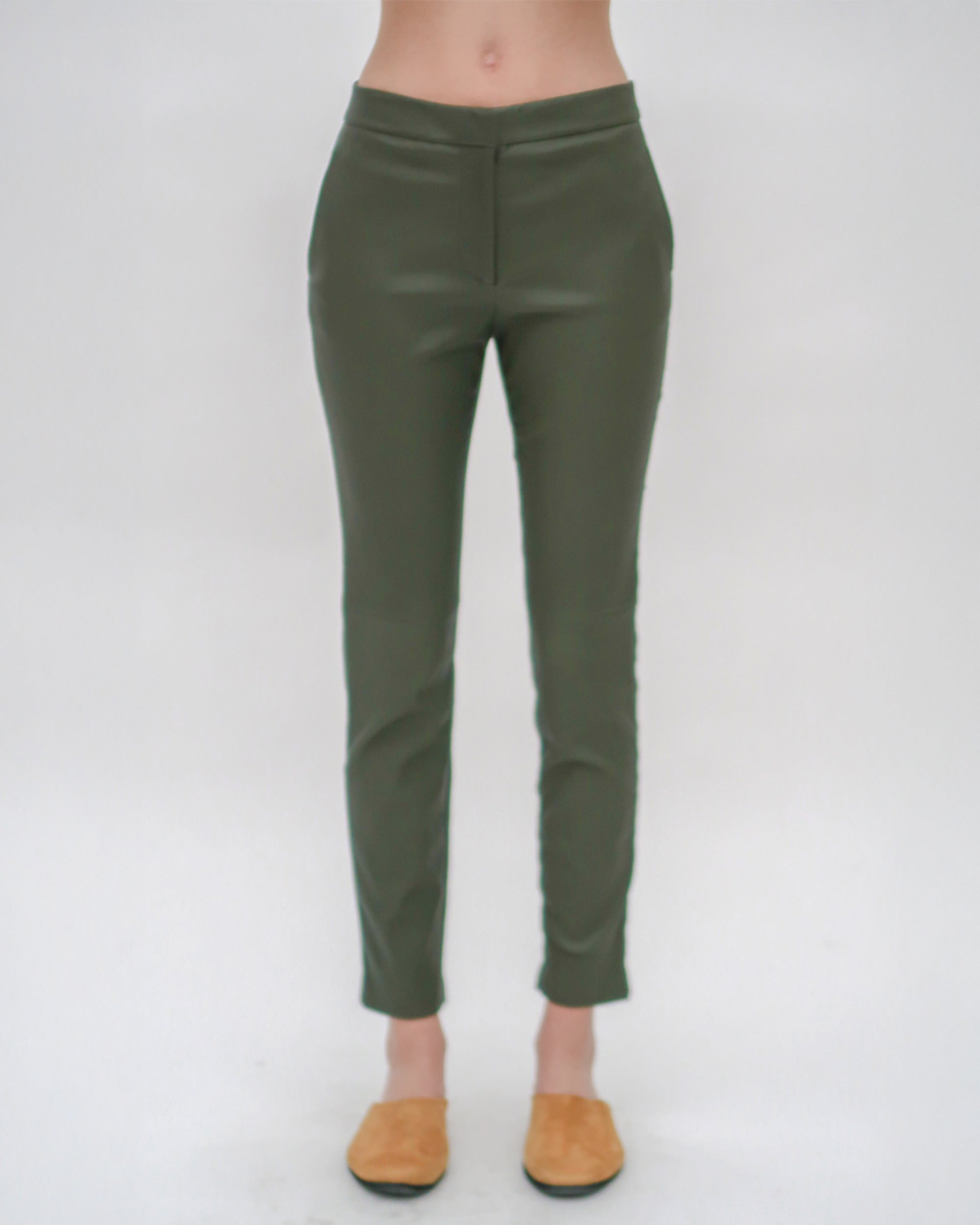 A wardrobe powerhouse, the Cropped Skinny Pant is truly an essential: cut in signature Stretch Plongé, the mid-rise pant features a close fit with a seam at each knee, allowing movement. The soft leather features a stretch cotton base, imparting enduring wearability to the style.