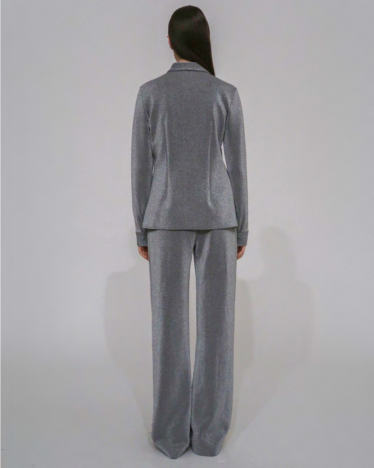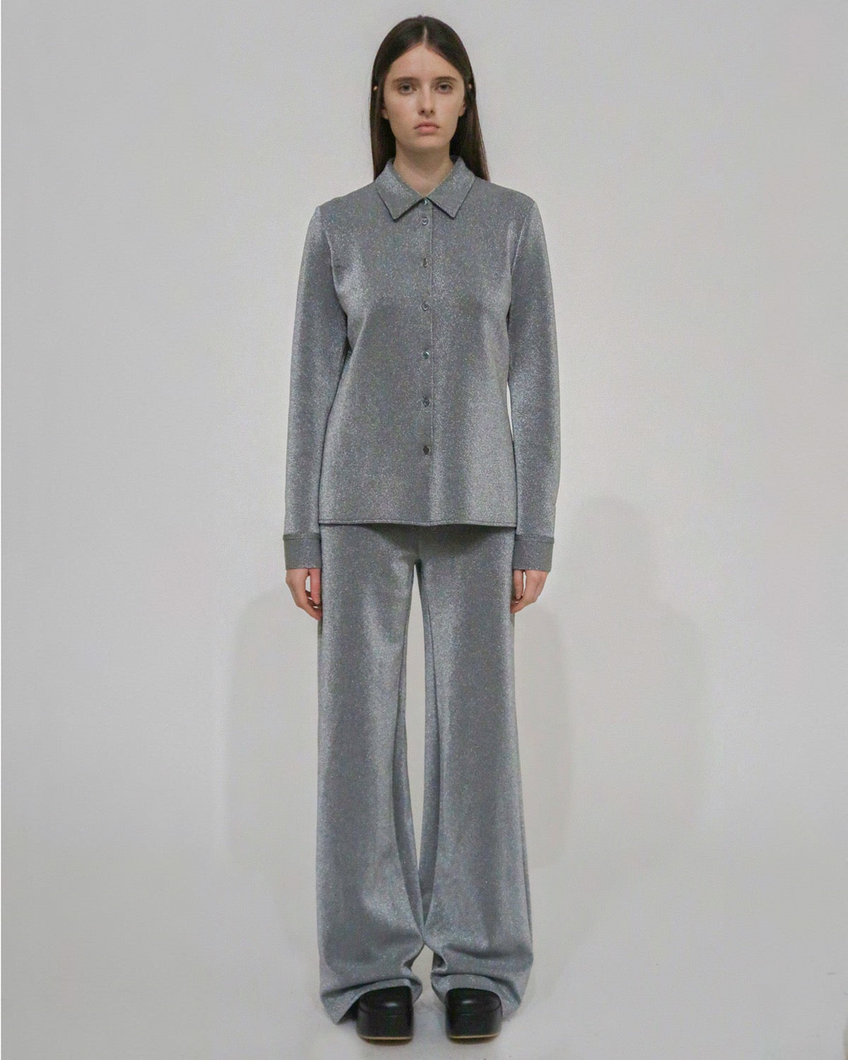 Designed with a minimalist silhouette that allows the bold pattern to shine, the Straight Pull-On Pant is crafted in Fall 24’s shimmering Lurex Interlock. Wearable with a wide stretch waistband and flattering straight leg, this style offers wearability and ease.