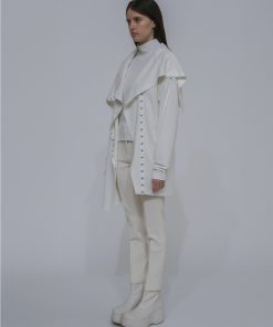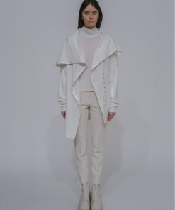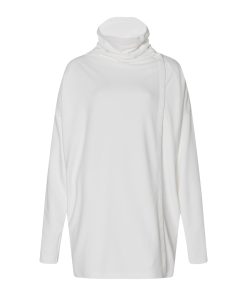 Offering incredible versatility, the new signature Interlock Jersey Funnelneck Snap Cardigan features a cocoon silhouette. Topped with a scrunched funnelneck, the relaxed style features an asymmetric snap front; the concealed placket can be worn open or closed for an adjustable fit and myriad styling options.