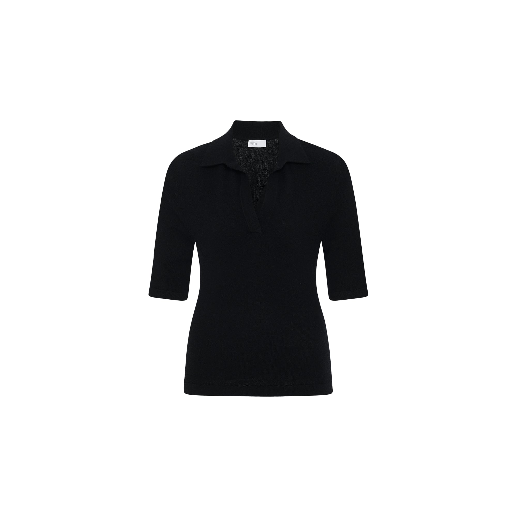 Knitted of Mercerized Wool Cashmere, a lightweight yarn with a plush combed hand and subtle sheen, this staple short-sleeve sweater is a riff on a Rosetta Getty favorite, the classic polo. Reimagined without buttons, it is designed to gently hug the silhouette, softly defining the body’s natural curves.