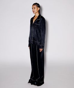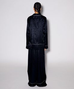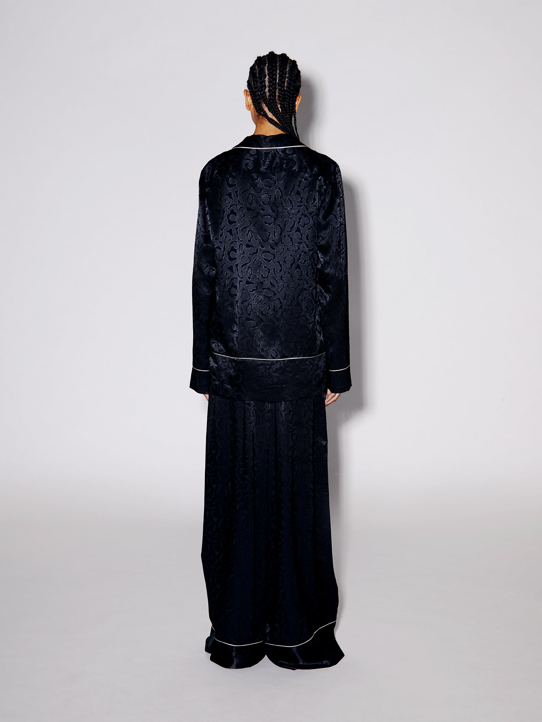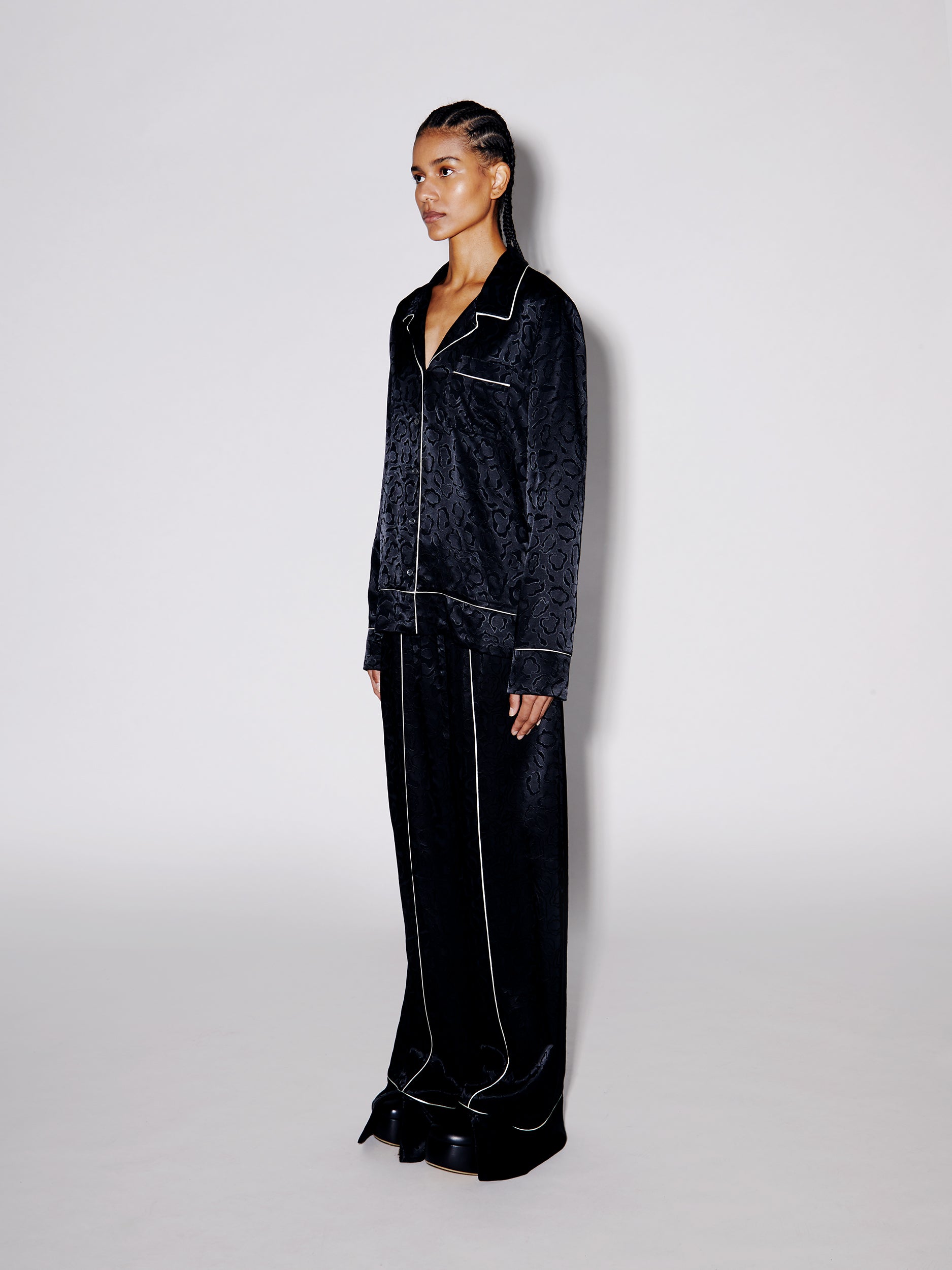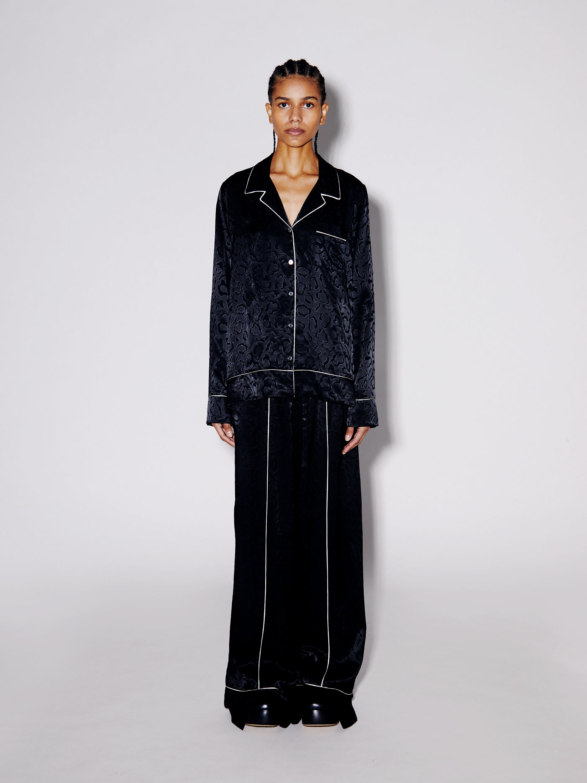 Contrast satin piping defines the silhouette of this classic pajama shirt. Crafted from seasonal Spotted Jacquard Satin for a luxe feel, the style is cut with a relaxed and comfortable fit, replete with elegant mother-of-pearl button detailing.