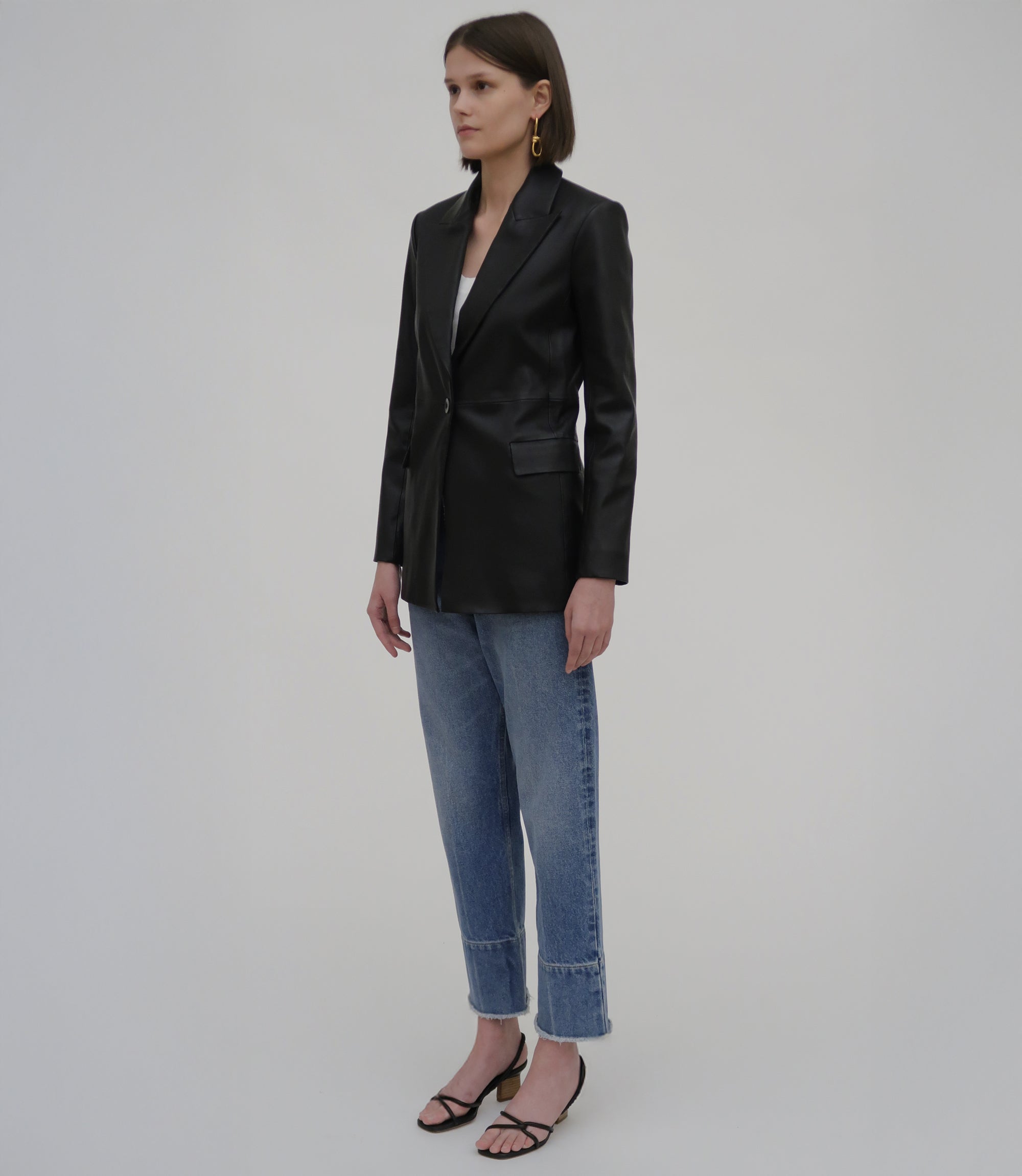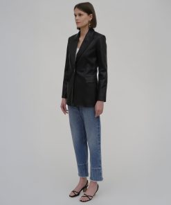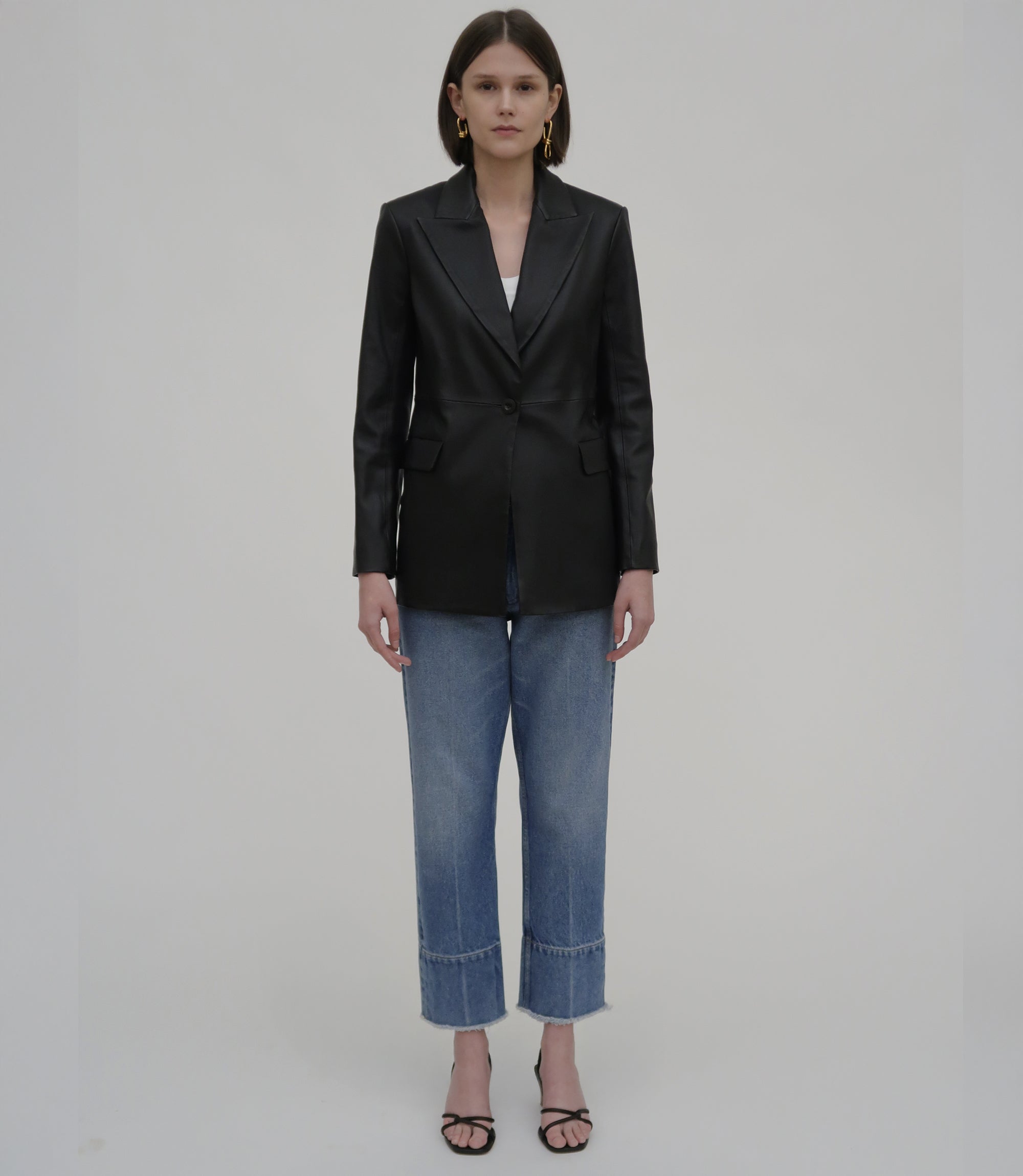 Rosetta Getty Women’s Peak Lapel Leather Jacket | Black