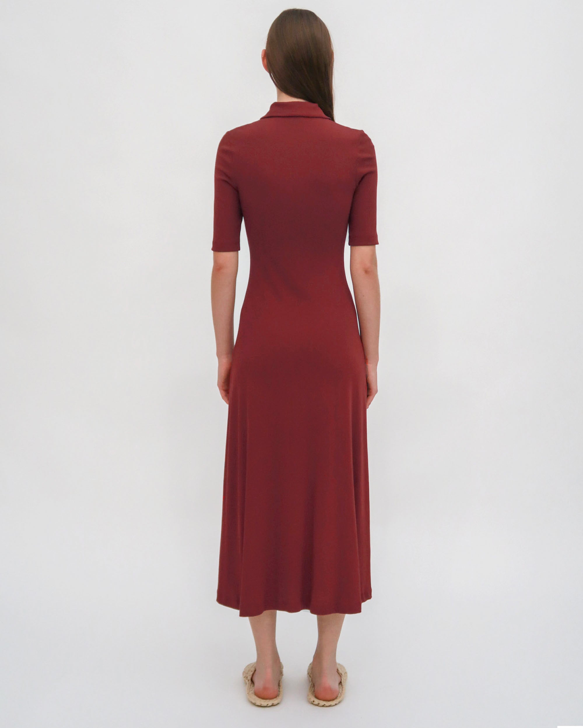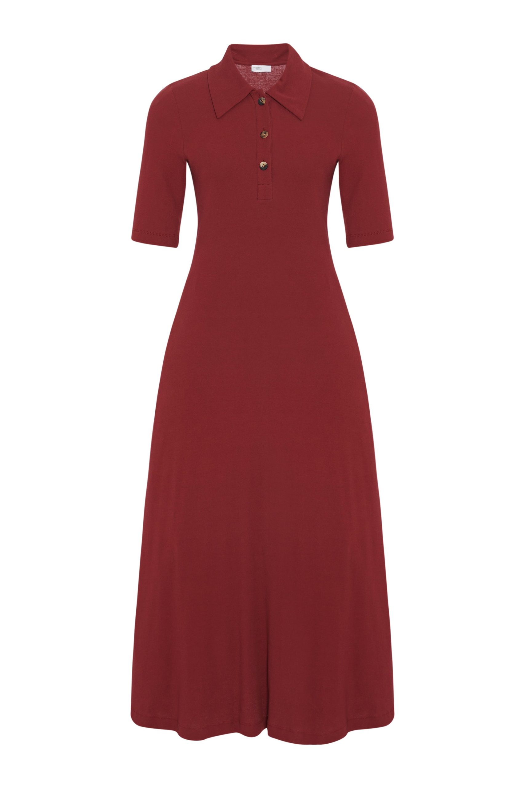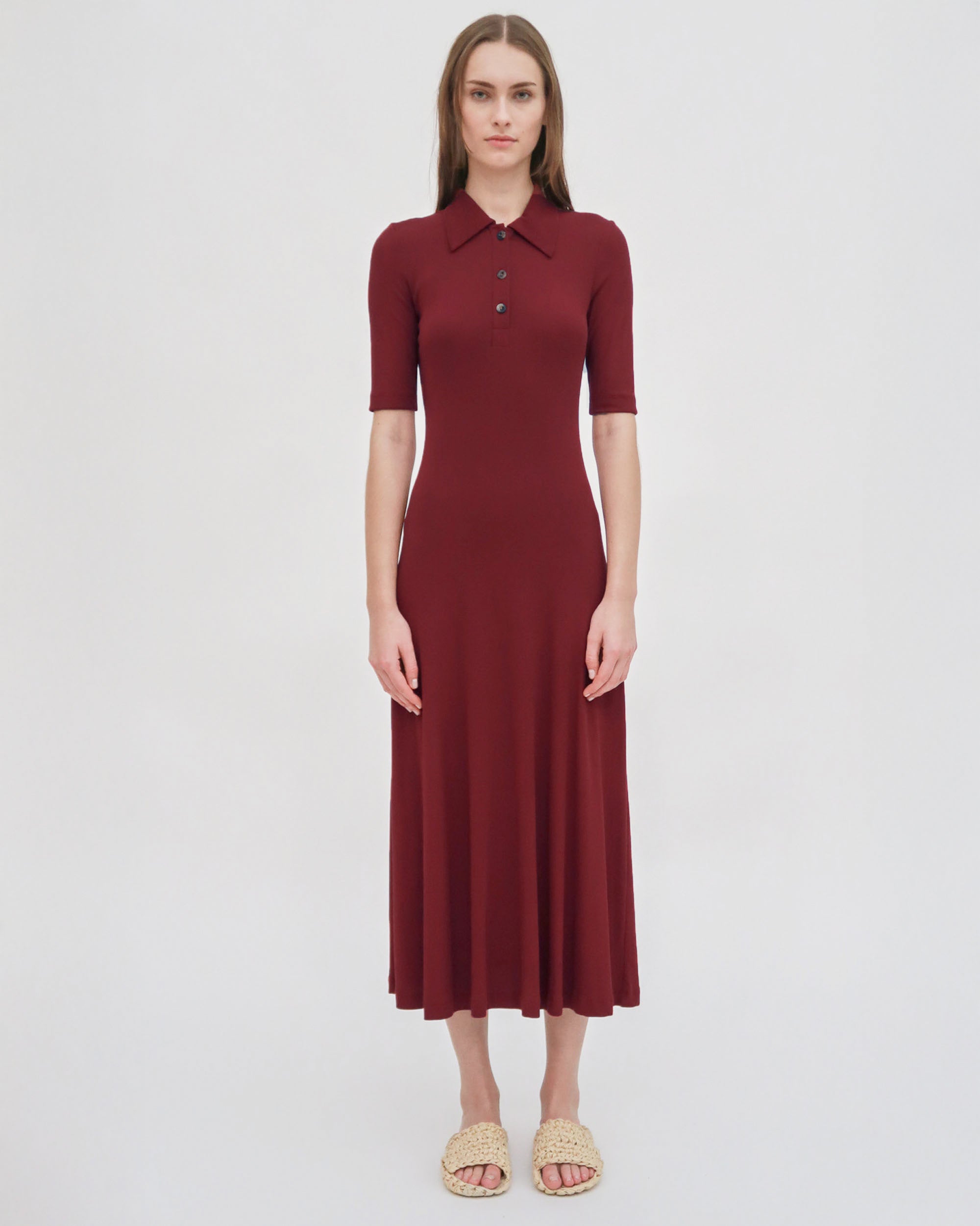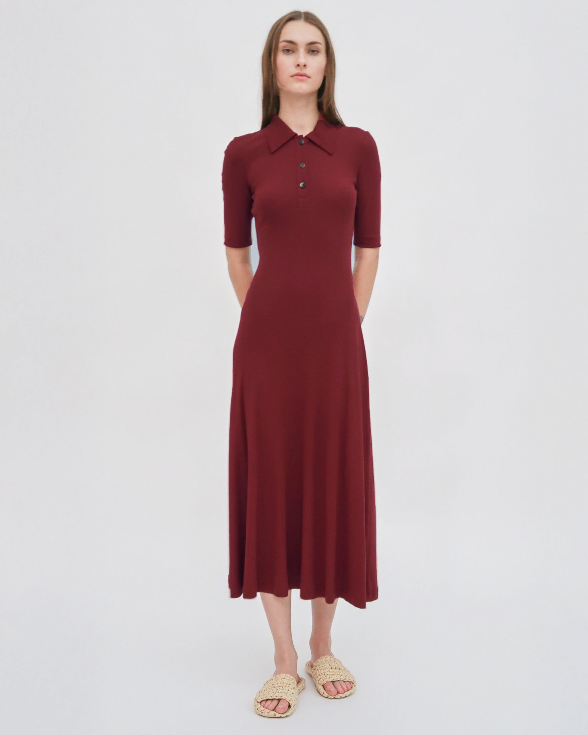 Cut close to the body before falling into a fluid A-line shape, this comfortable dress silhouette is effortless yet refined. The soft feel of the signature fiber Mercerized Cotton Jersey makes the piece infinitely wearable and easy to style while still flattering the natural body.