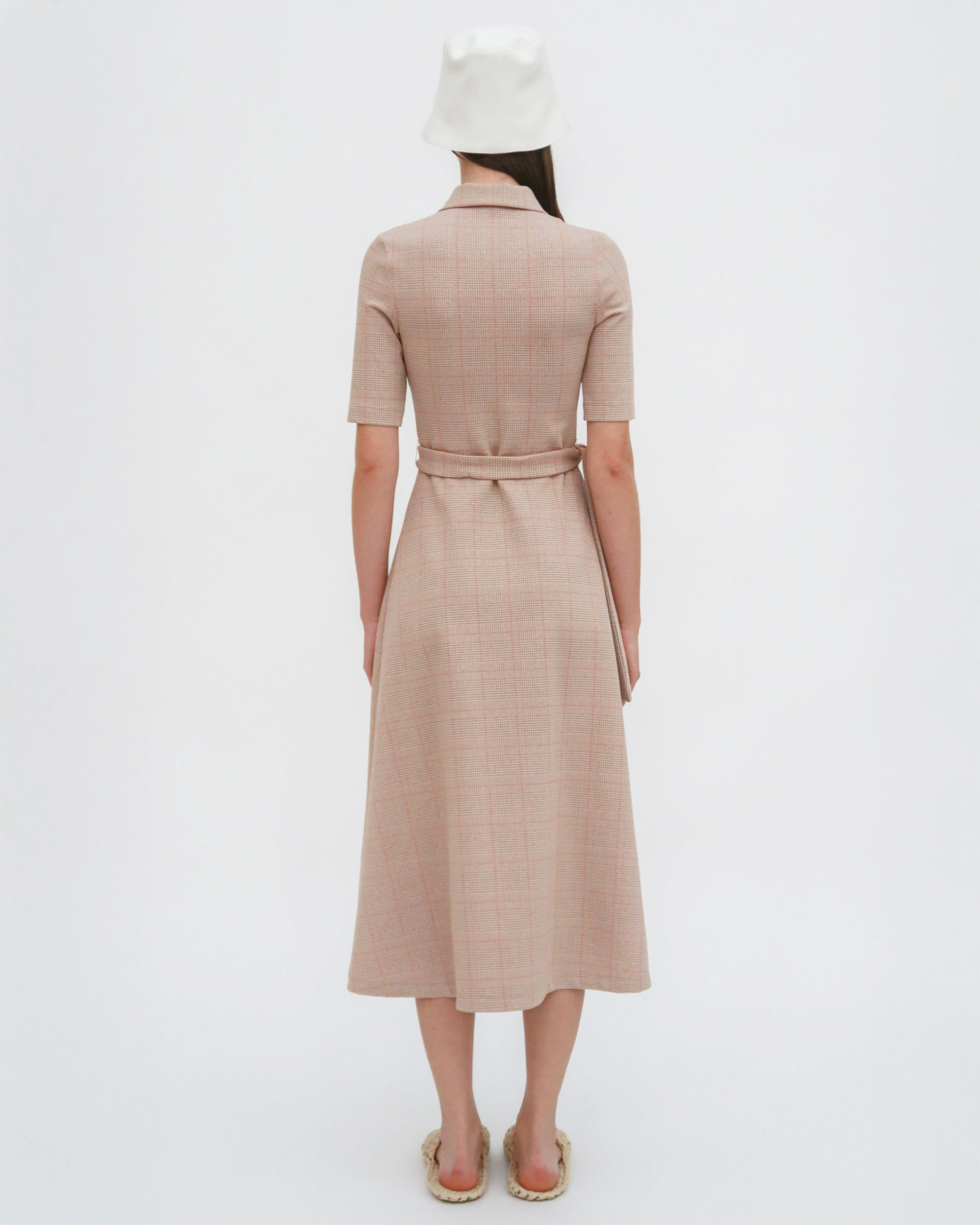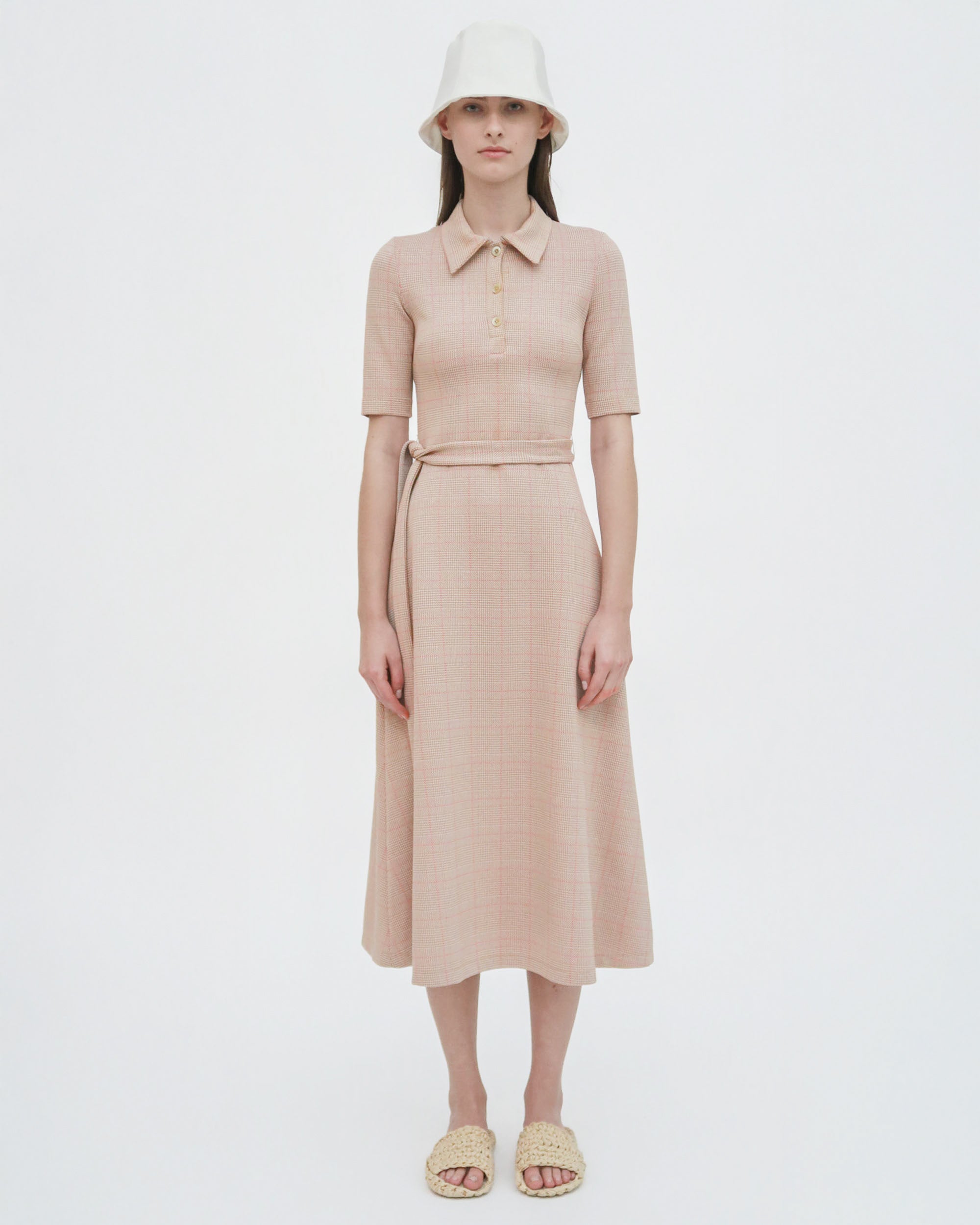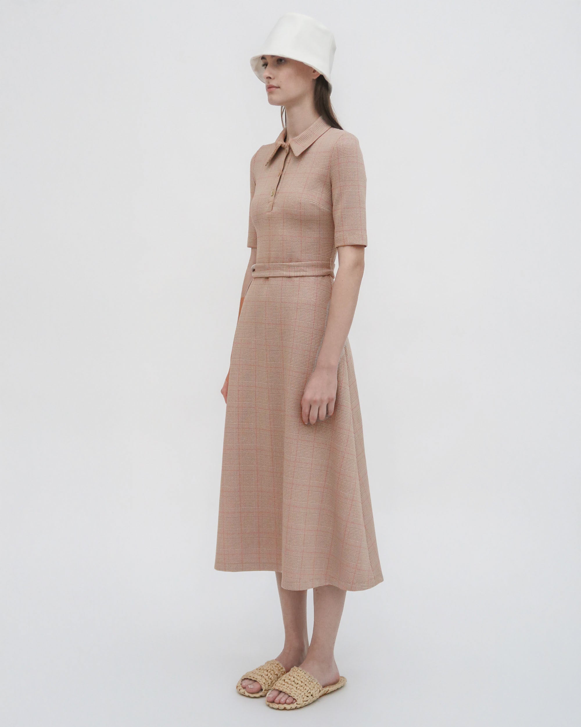 Spring 25’s new Polo Dress updates a favorite Rosetta Getty style. Cut for a closer fit, it flows into a fluid A-line shape at the hem. The Prince of Wales Plaid Interlock Jacquard has a sense of polish but with the ease of stretch, making the piece infinitely wearable and easy to style while flattering the natural body.