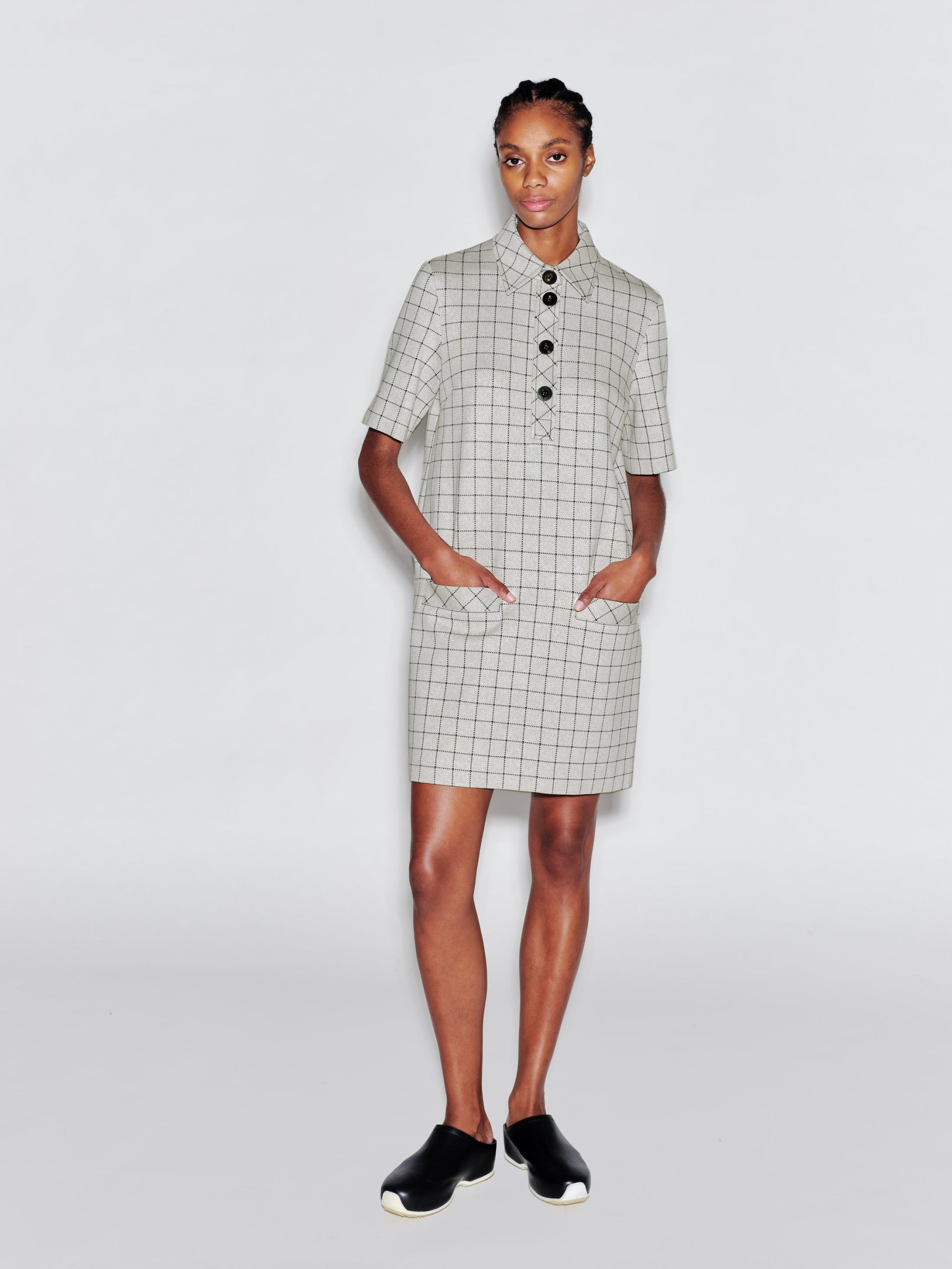 Designed with a ‘60s-inspired shift silhouette, this polo mini dress is crafted in the seasonal Windowpane Interlock Jacquard fabric. Offering a refined look alongside ease of wear, the versatile shape provides myriad styling options.