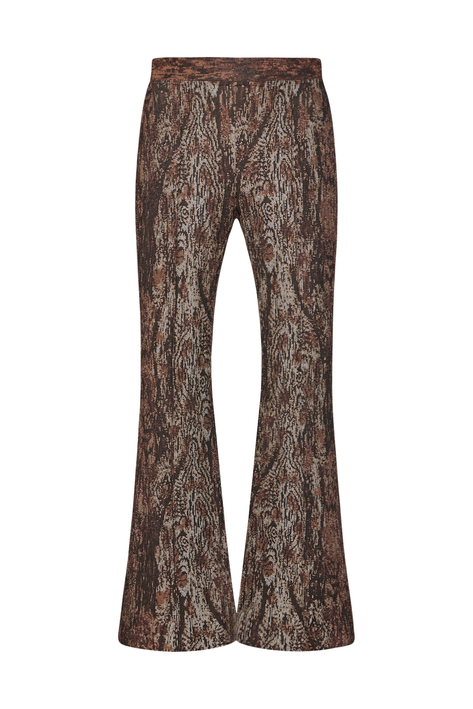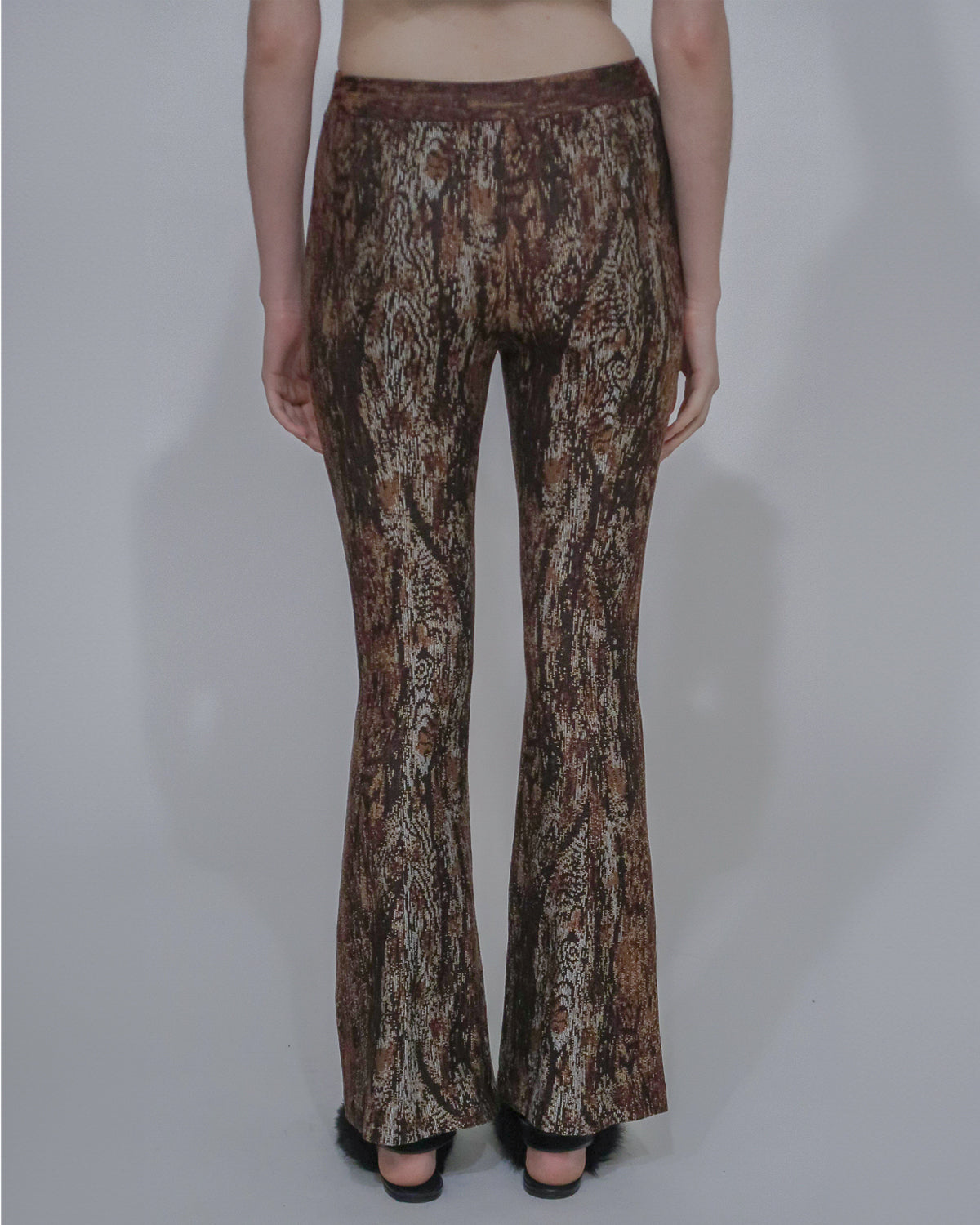 Crafted in the seasonal Woodgrain Interlock Jacquard, this signature pant is designed to flatter the body with a mid-rise and flared leg. Rosetta Getty’s special fabric and the elasticized waist impart ease to the cropped silhouette.