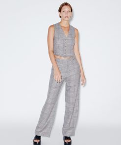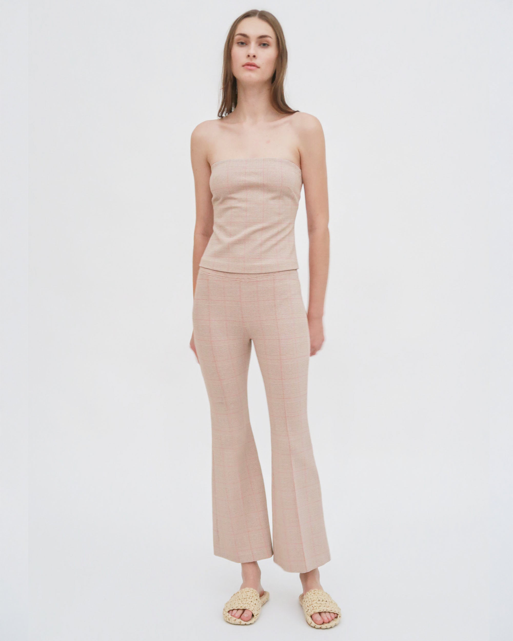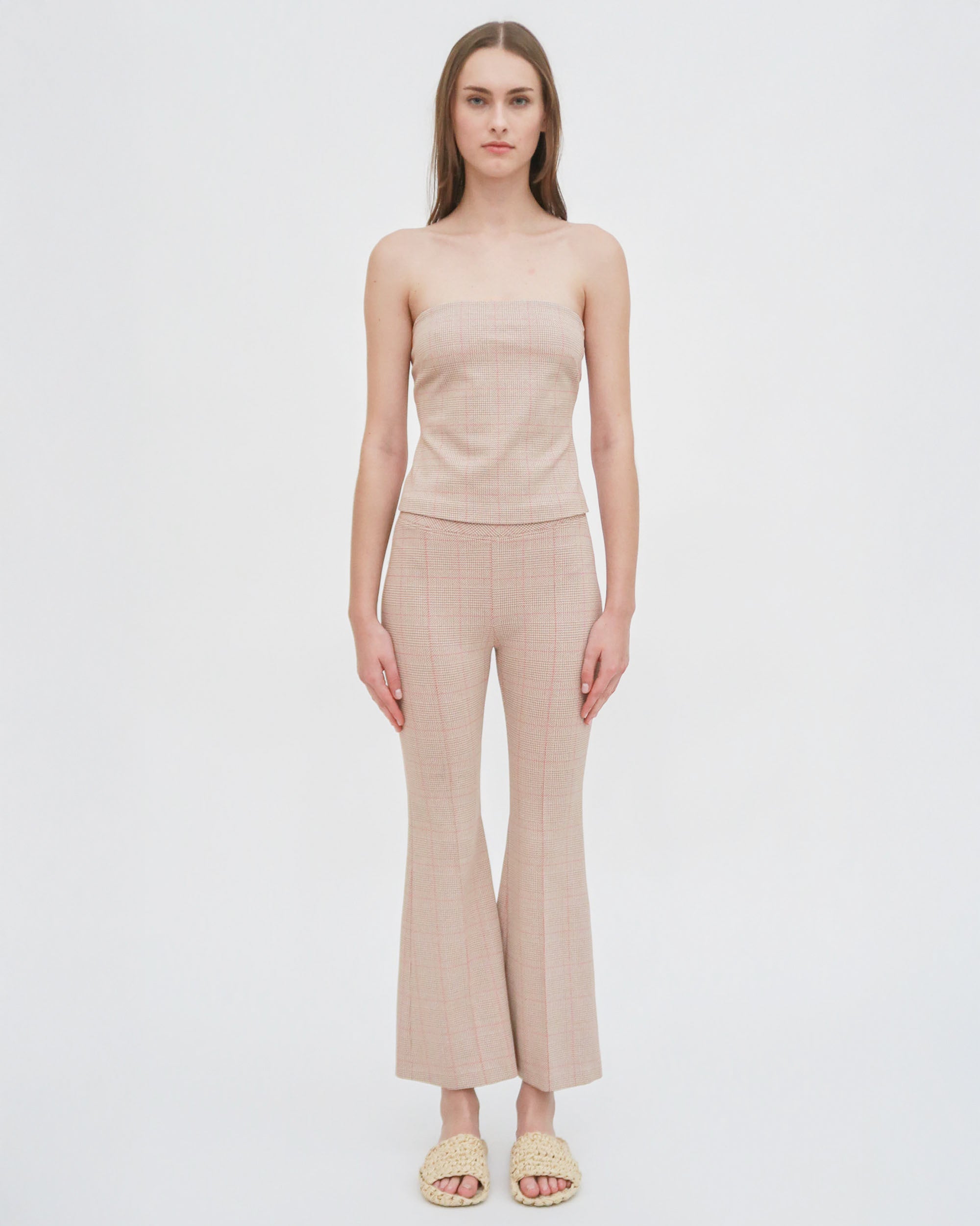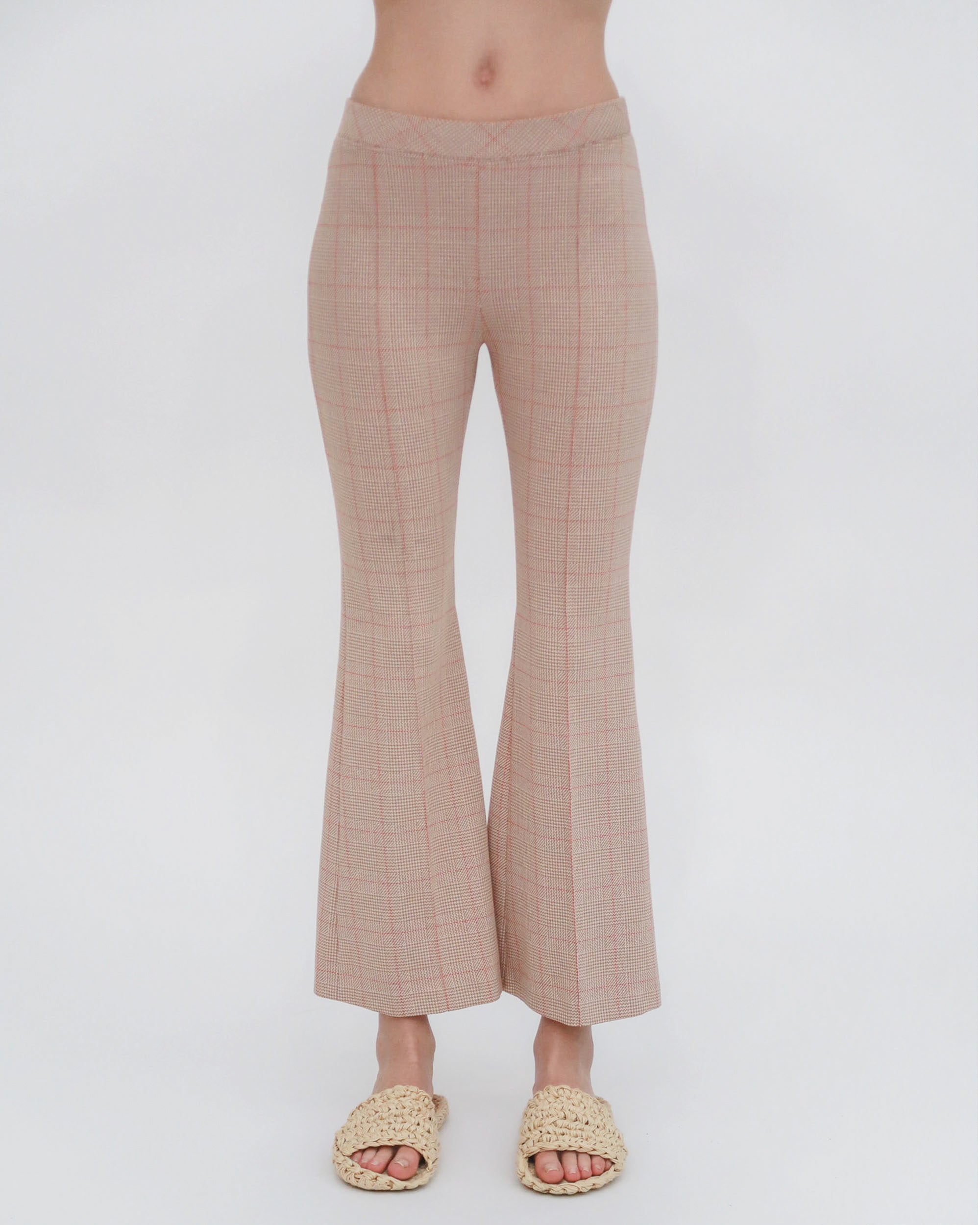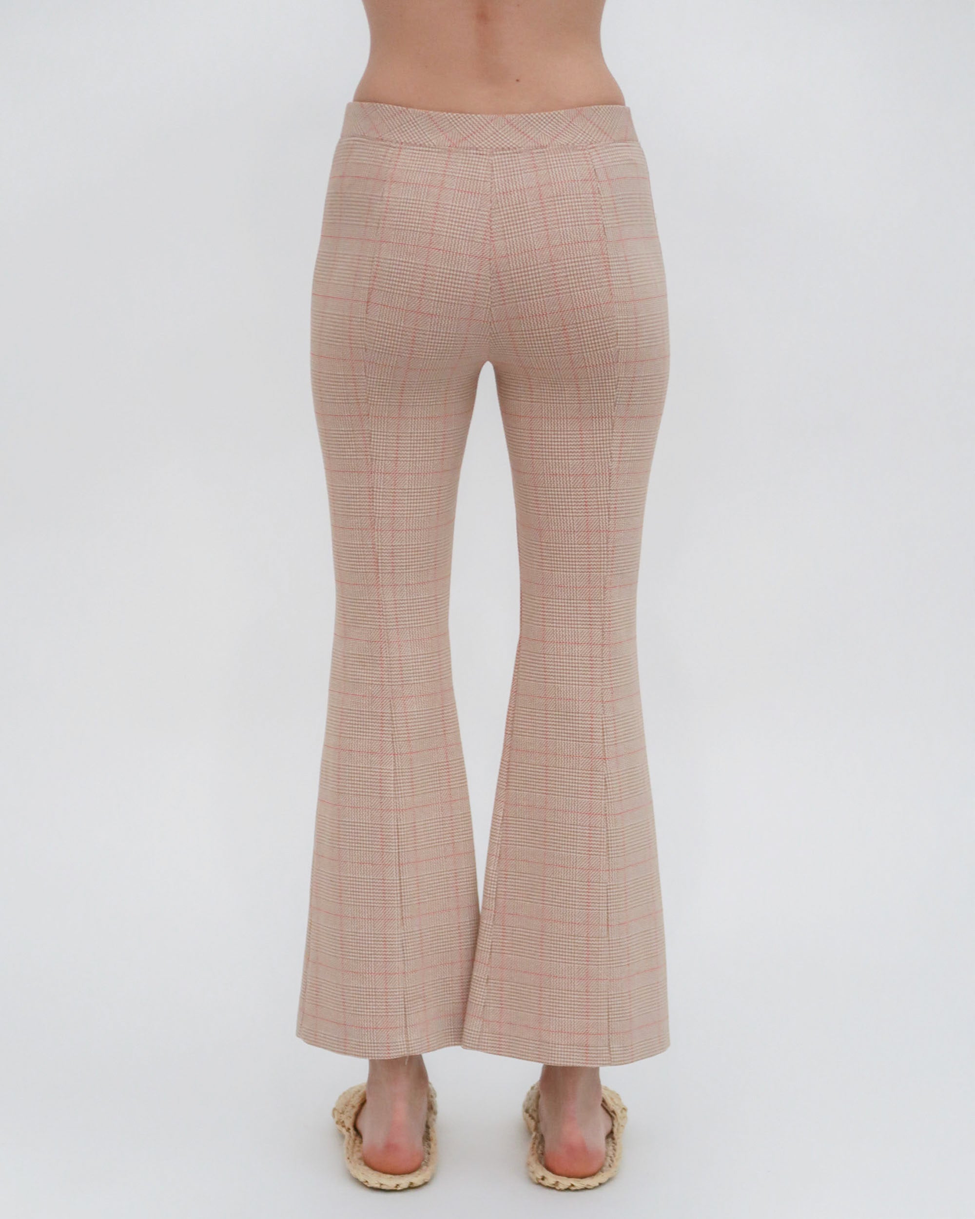 Crafted in the seasonal Prince of Wales Plaid Interlock Jacquard, this signature pant is designed to flatter the body with a mid-rise and flared leg. Rosetta Getty’s special fabric and the elasticized waist impart ease to the cropped silhouette.