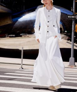 An exclusive fabrication for the season, the Prince of Wales Plaid Interlock Jacquard is similar to our Interlock Jersey with a slightly slick hand and added elastic to contour the body. It’s produced by an Italian mill certified for its sustainable practices by the Associazione Tessile e Salute (Health and Textiles Association) and Forest Stewardship Council (FSC), which uses viscose produced using sustainably sourced and certified FSC wood pulp.