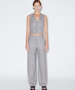 Crafted in the seasonal Prince of Wales Plaid Interlock Jacquard, this signature pant is designed to flatter the body with a mid-rise and flared leg. Rosetta Getty’s special fabric and the elasticized waist impart ease to the cropped silhouette.