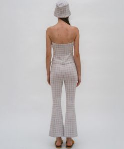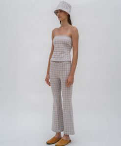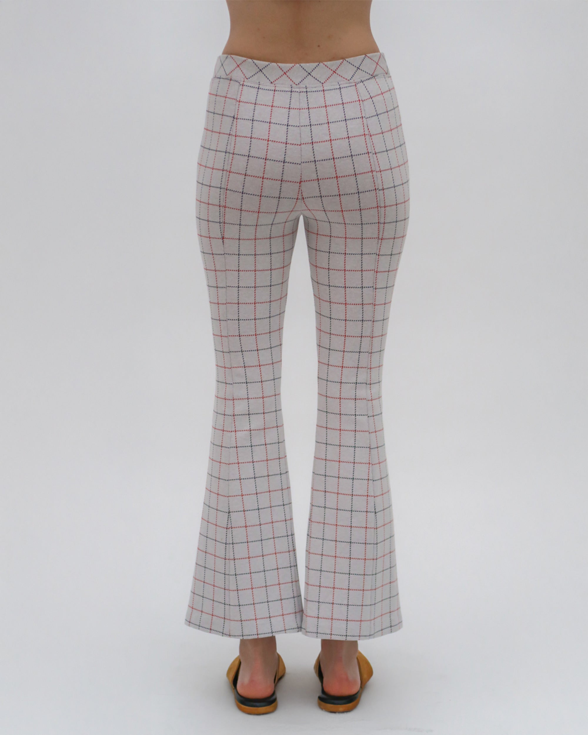 Crafted in the seasonal Striped Windowpane Interlock Jacquard, this signature pant is designed to flatter the body with a mid-rise and flared leg. Rosetta Getty’s special fabric and the elasticized waist impart ease to the cropped silhouette.