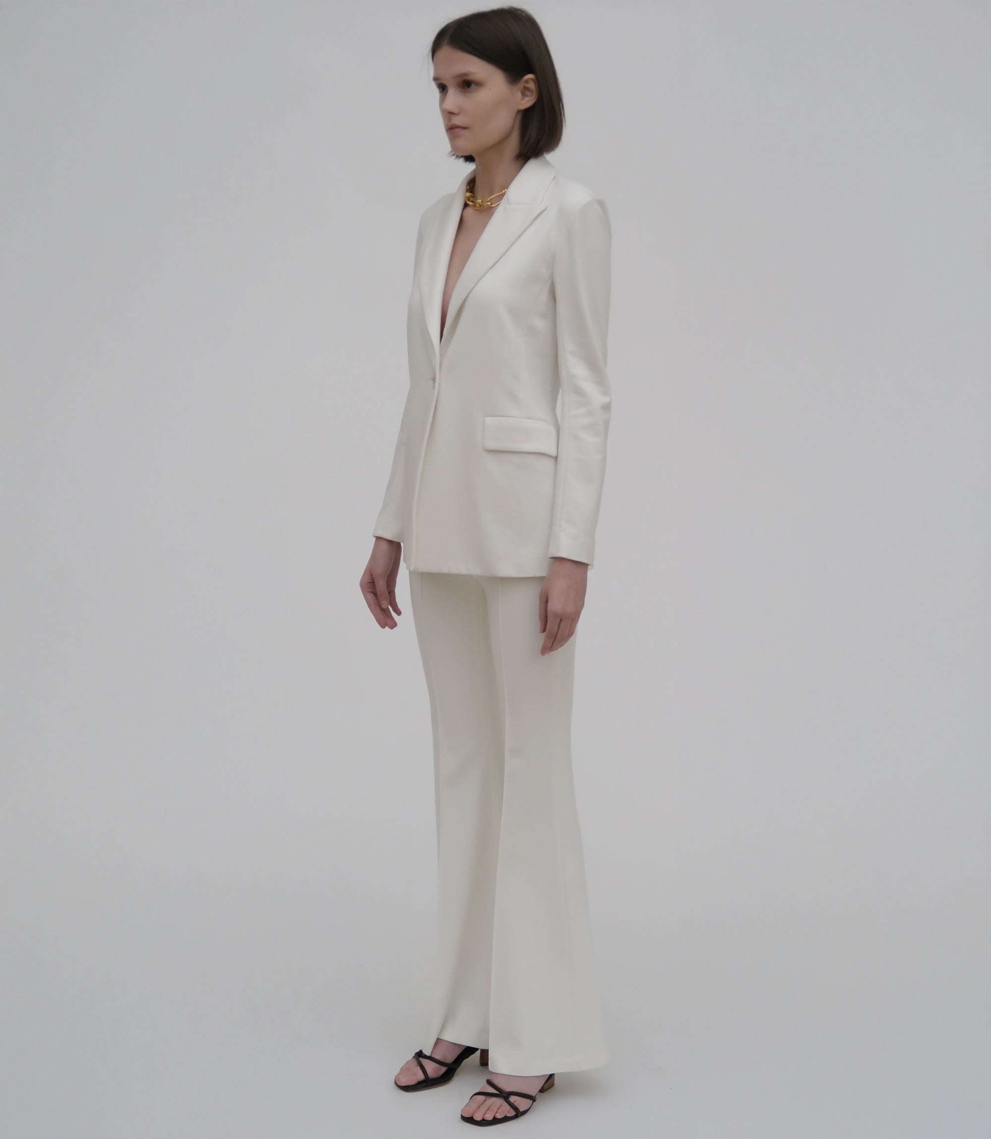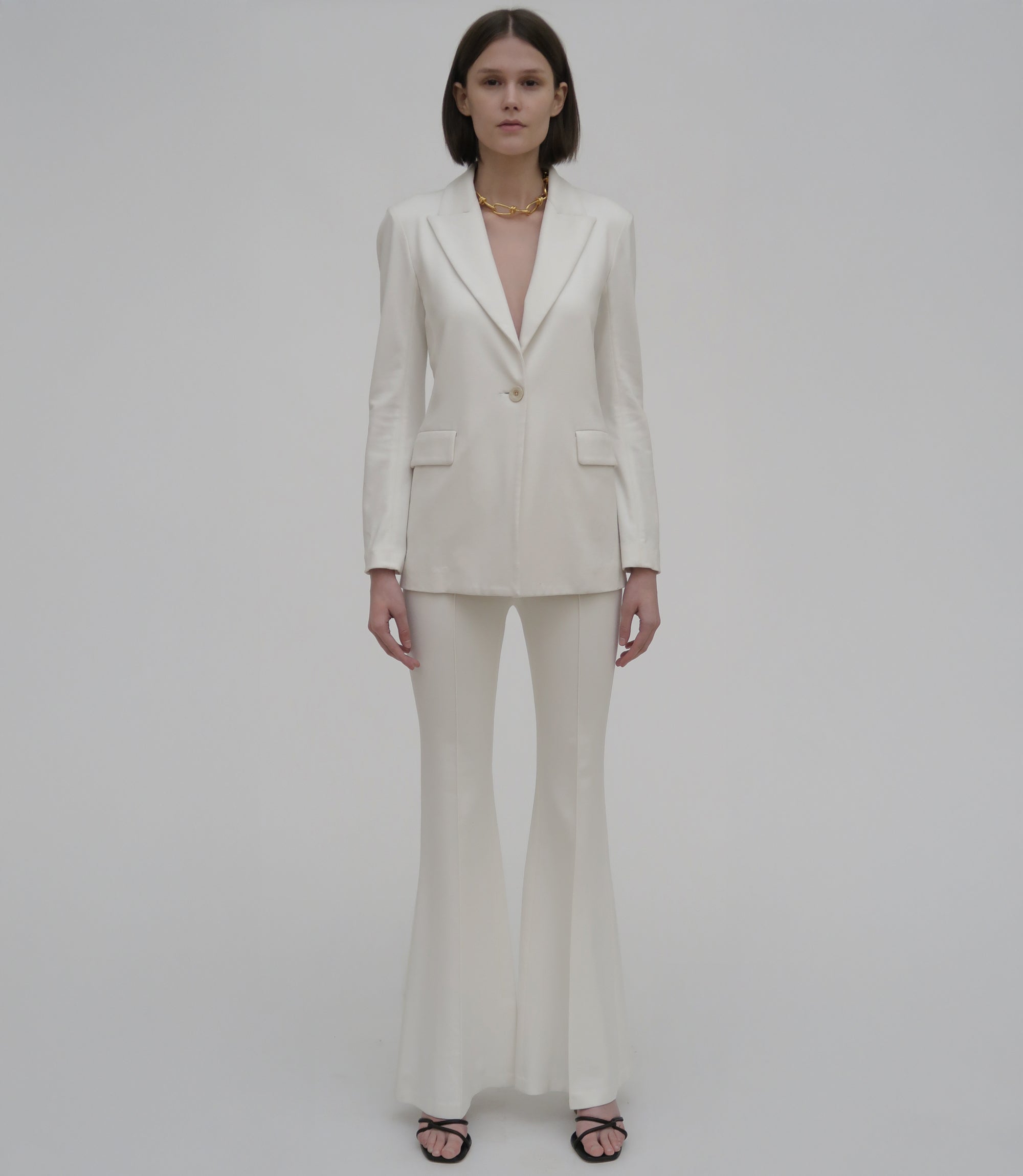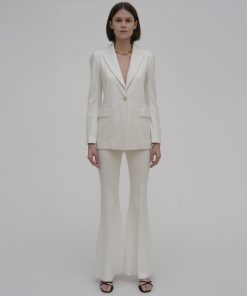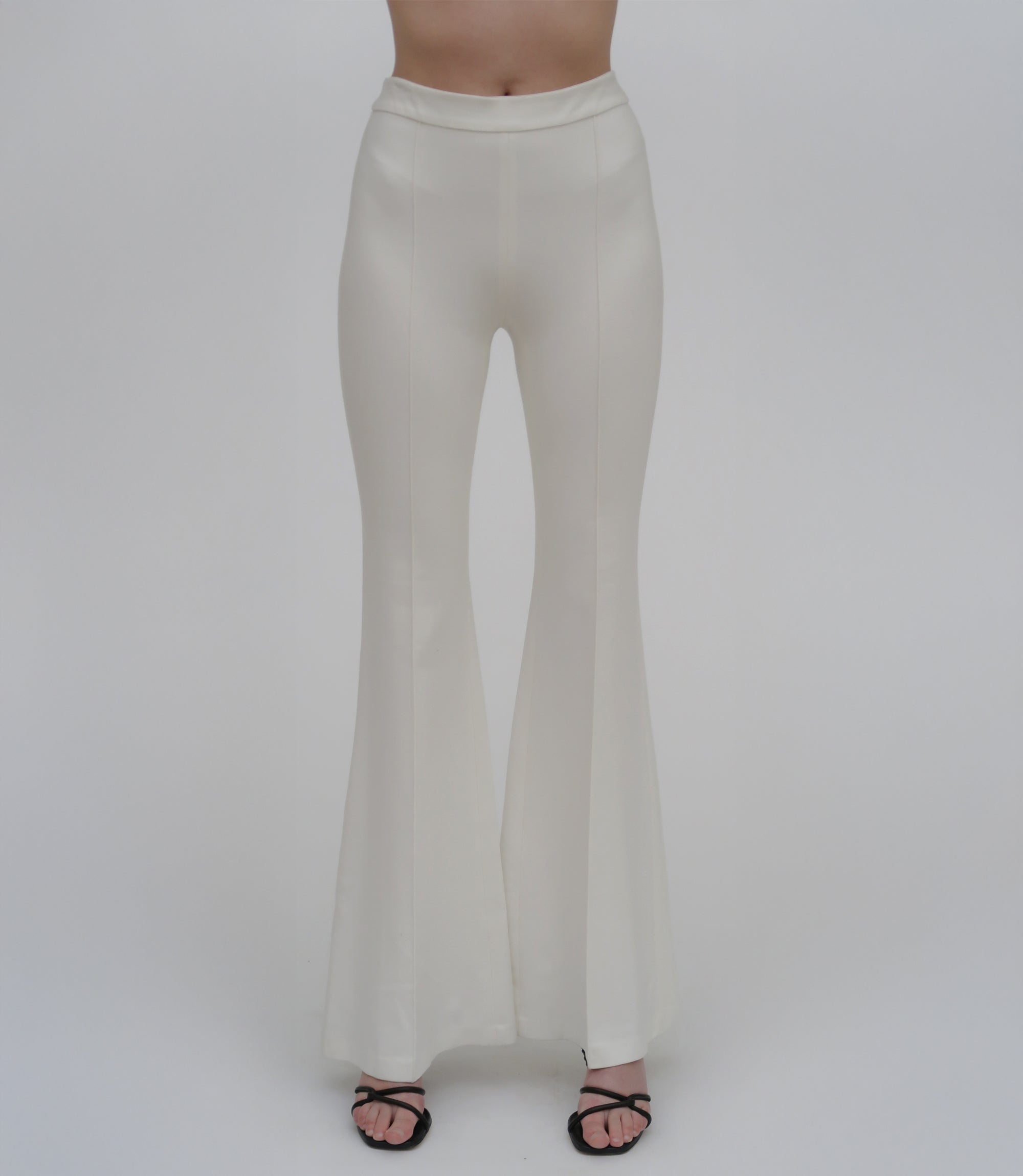 Crafted to flatter and elongate the body, this fluid pant flares gently from the knee, creating a long and lean silhouette from hip to hem. Pintuck seaming down the front and back lengthens further, while the elasticized mid-rise waist enhances the ease of wear.