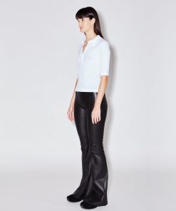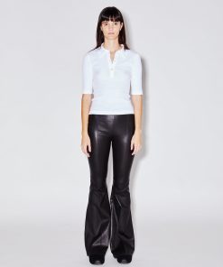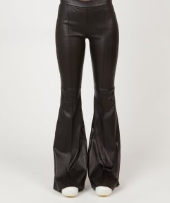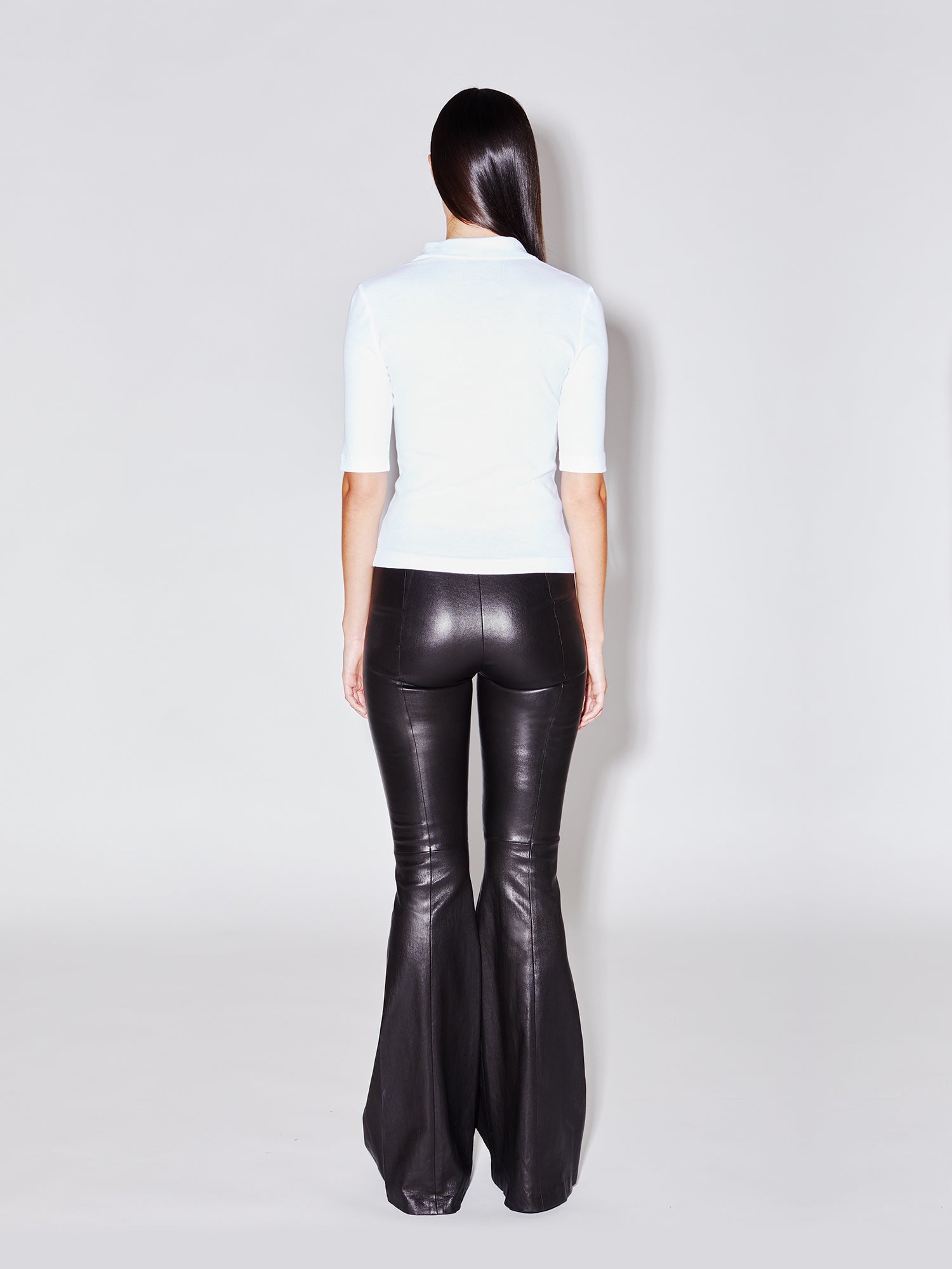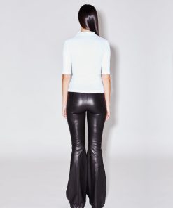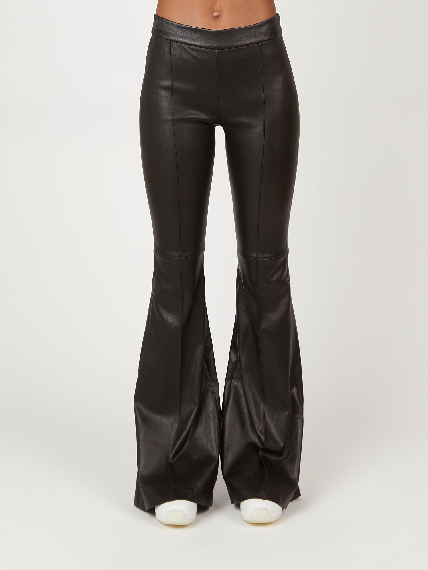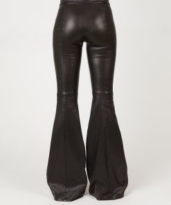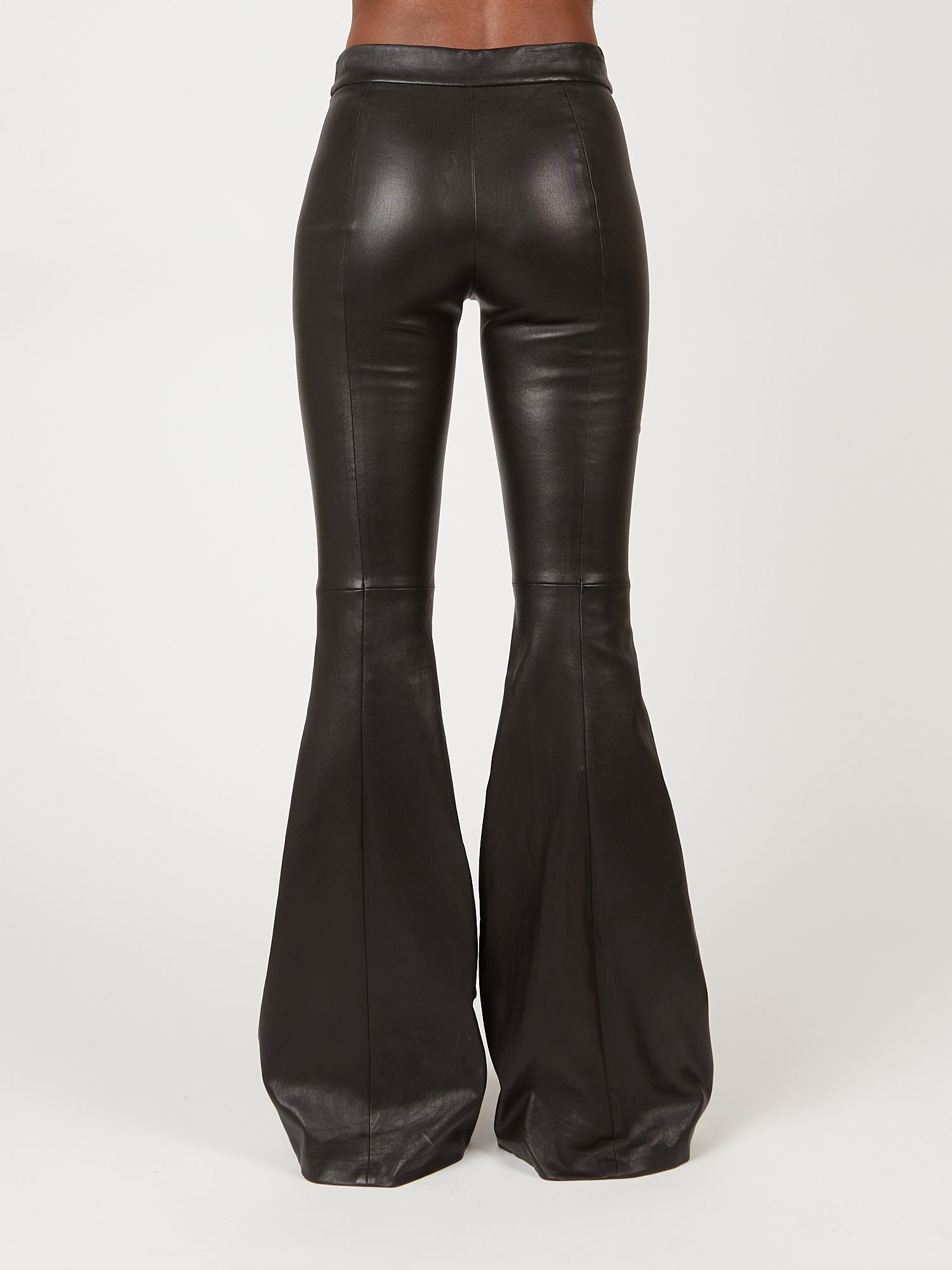 Cut to flatter and elongate the body, this ultra-soft leather pant has a mid-rise, flared-leg silhouette. Pintuck seaming down the front lengthens further, while the elasticized waist enhances the ease of wear — imparting a relaxed sensibility to the otherwise luxe style.