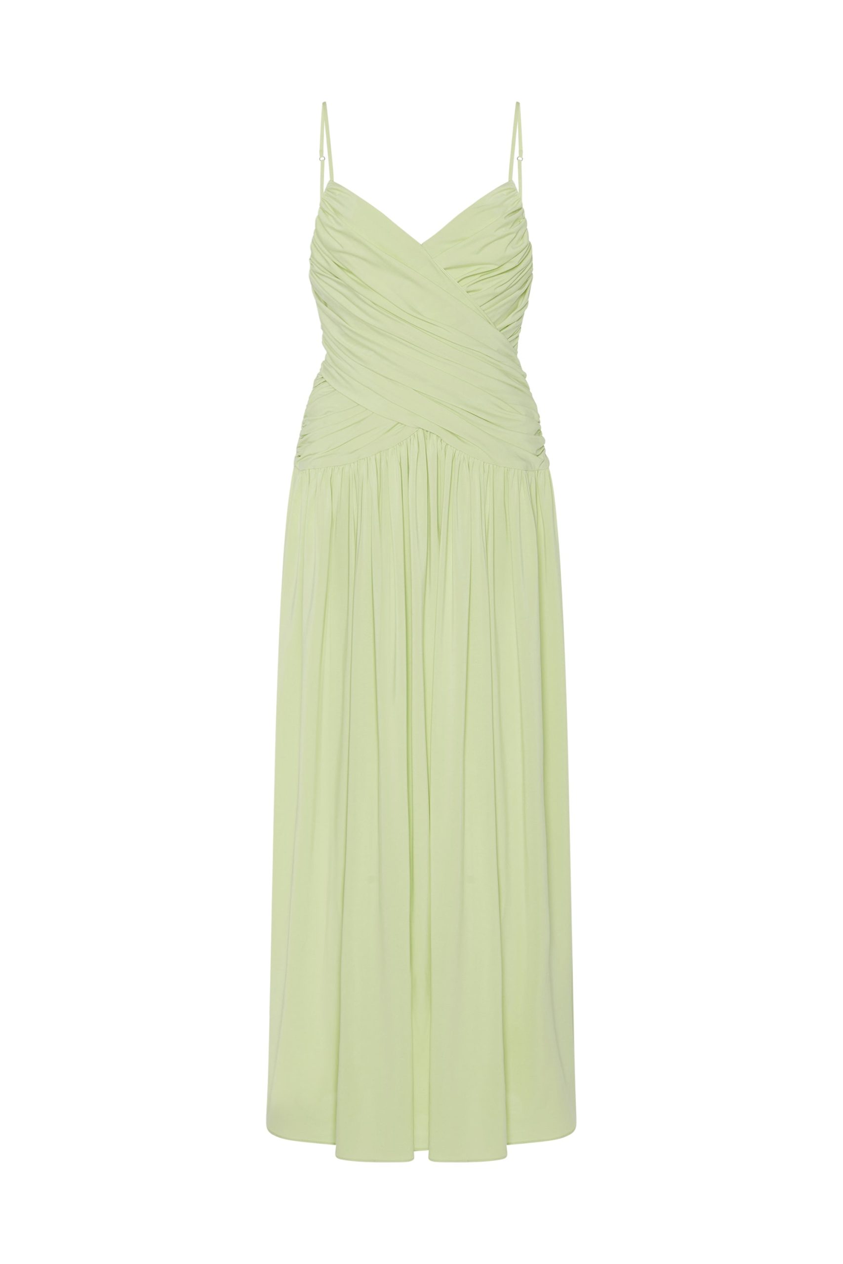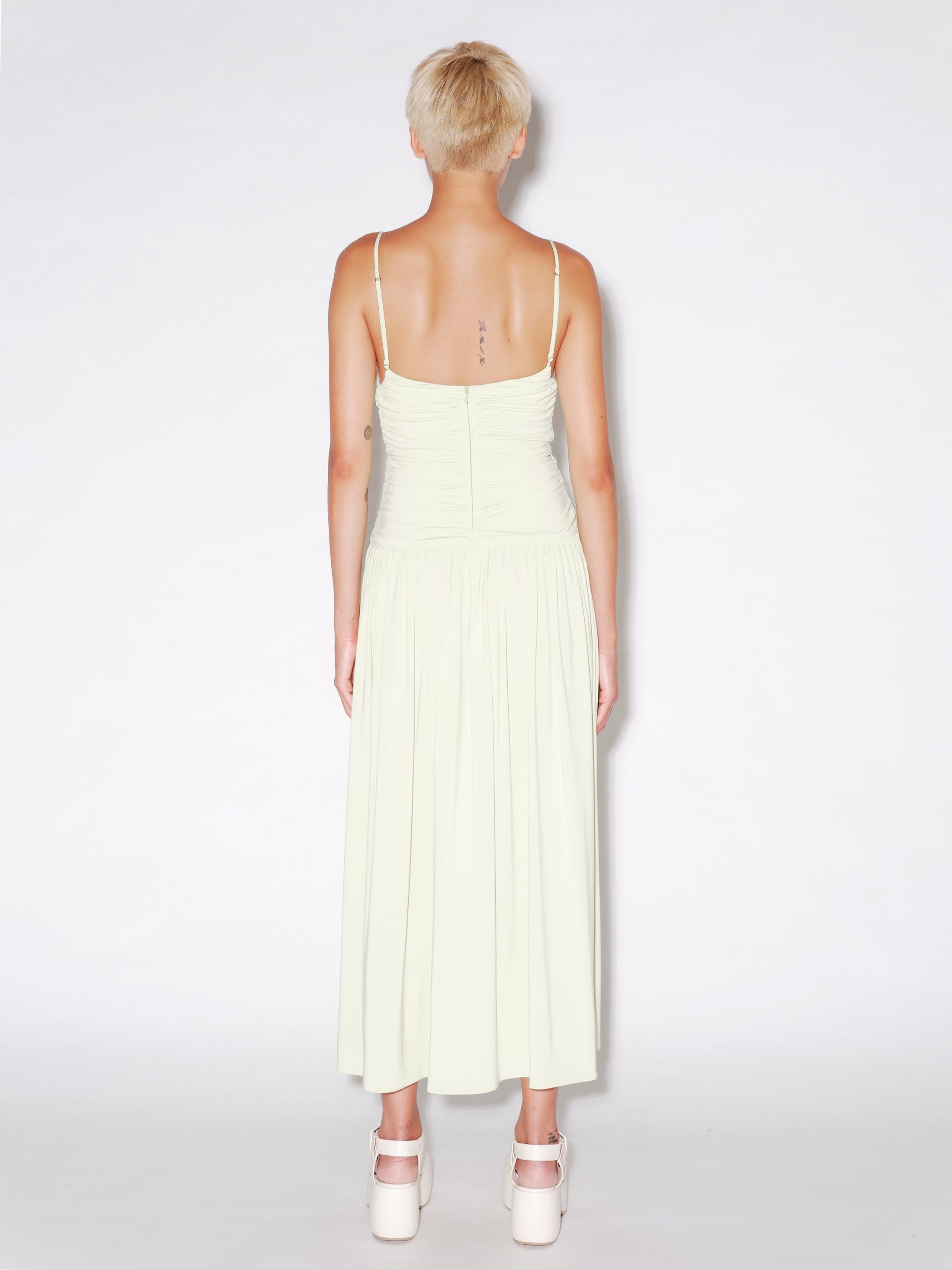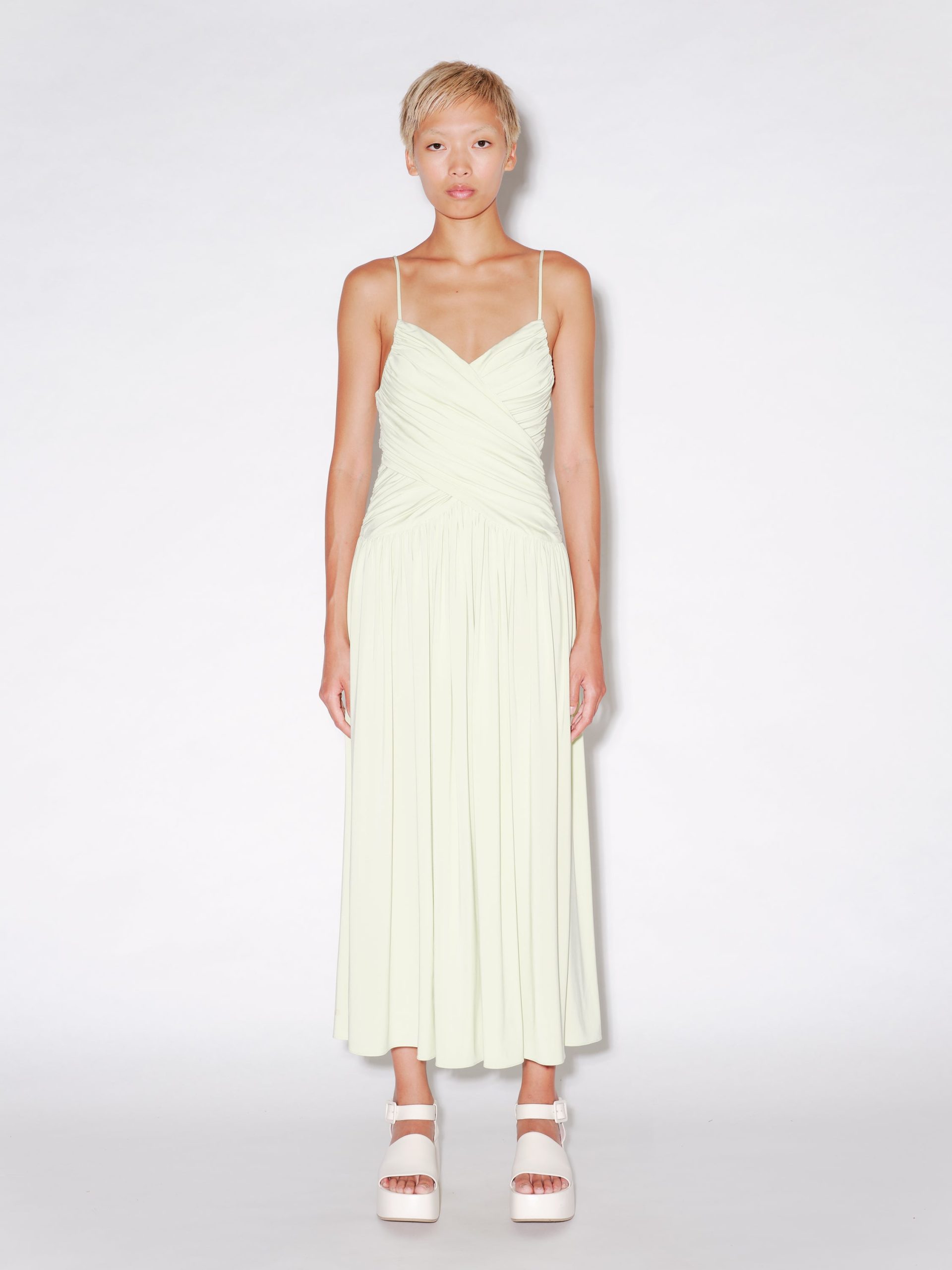 Rosetta Getty’s stunning slip dress features for Resort 24 in matte jersey. Crafted with crisscrossing around the bodice that gives way to a full skirt, the smooth fabric spotlights precision draping while being stretchy and comfortable to wear.
