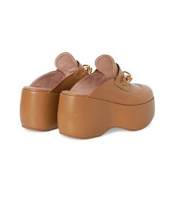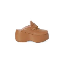 Embellished with a decorative chain detail across the vamp, Rosetta Getty’s Platform Clogs feature modern construction inspired by vintage silhouettes. The sleek calfskin upper melds seamlessly with the tonal leather-covered platform, allowing for a streamlined look that adds height with ease.