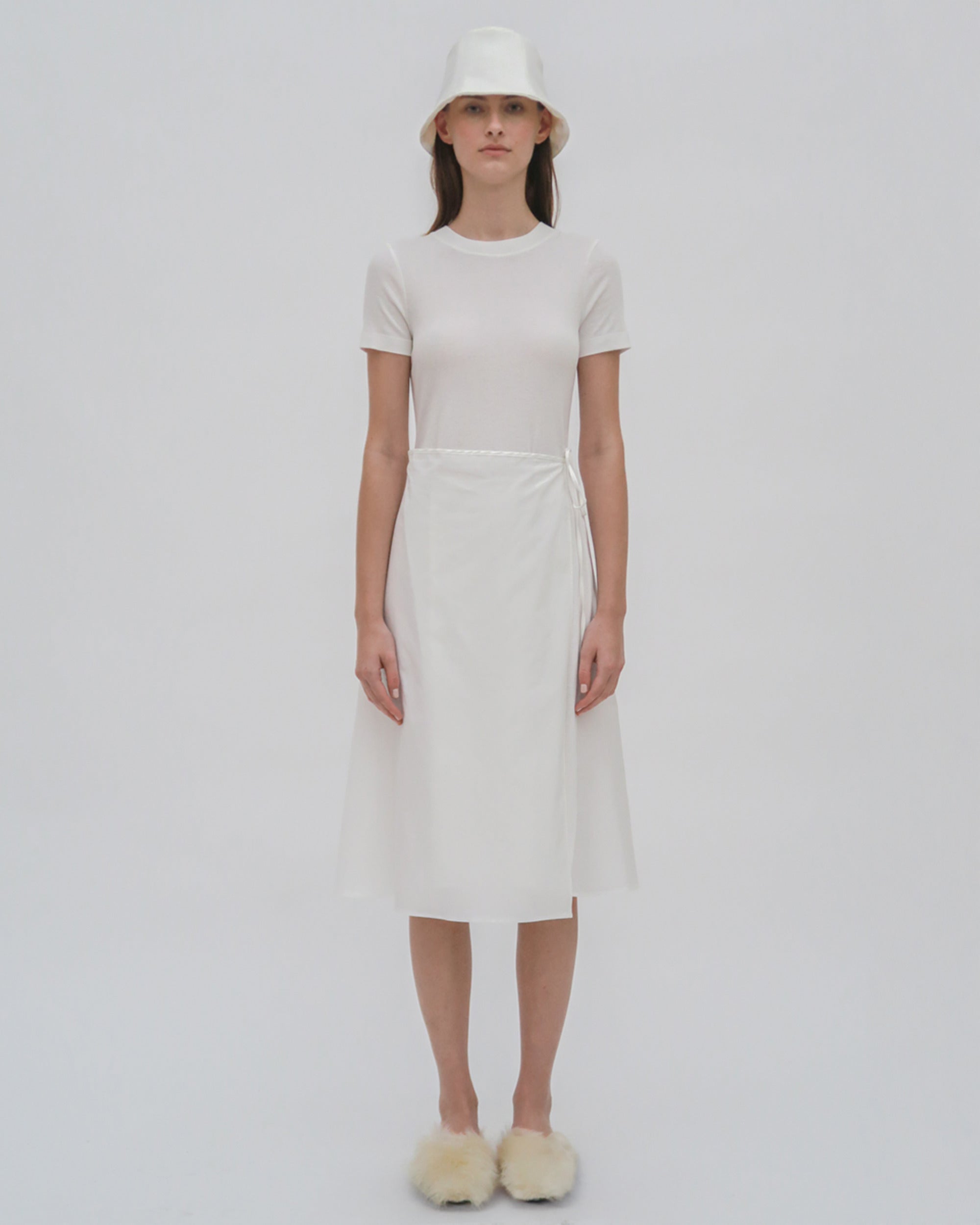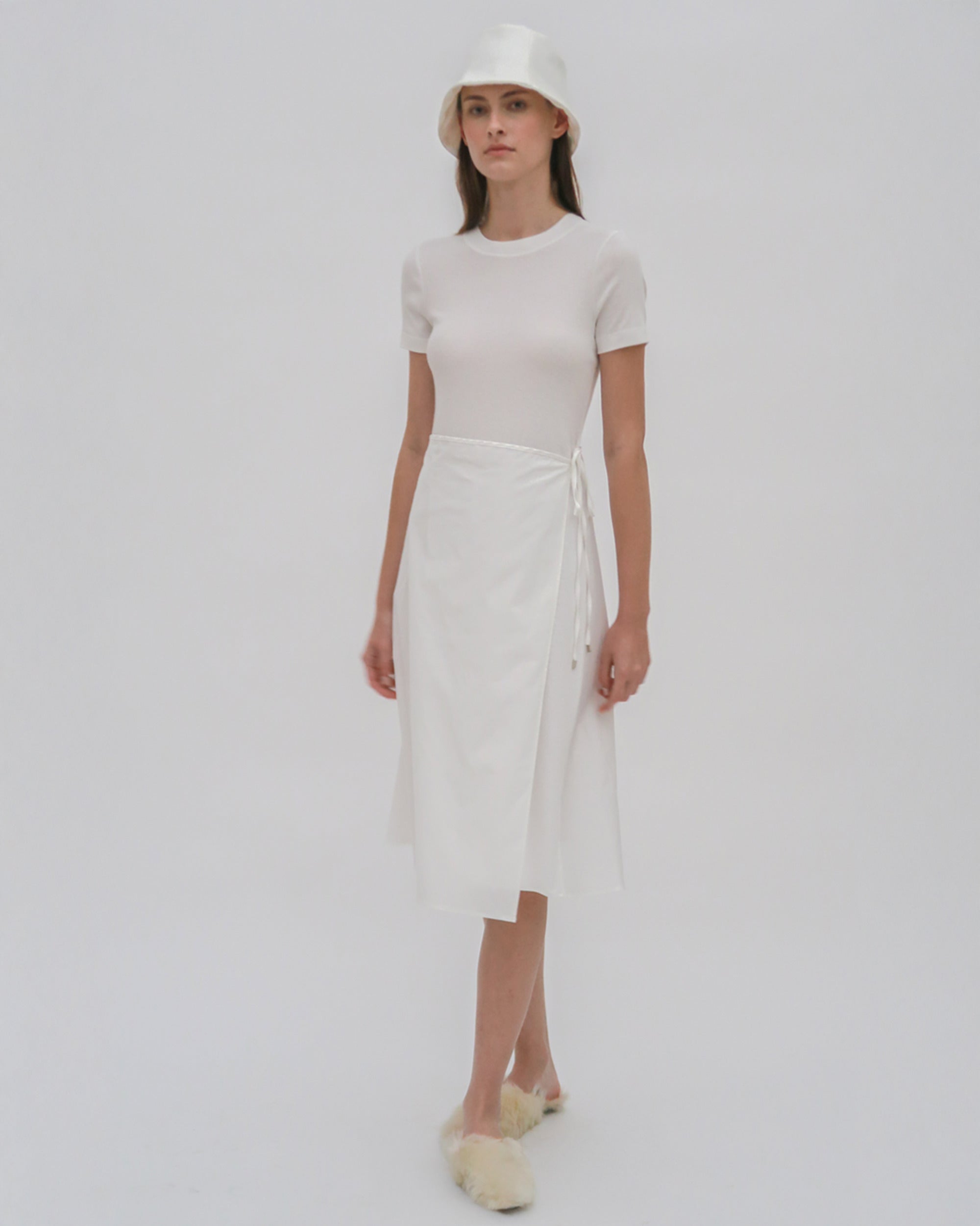 Apron-style silhouettes have long been a Rosetta Getty staple. For Resort 25, it presents in a mix of Cotton Poplin and Mercerized Cotton Rib Jersey—blurring the lines between T-shirts and more formal shirting, this style has an elevated feel with a polished finish.