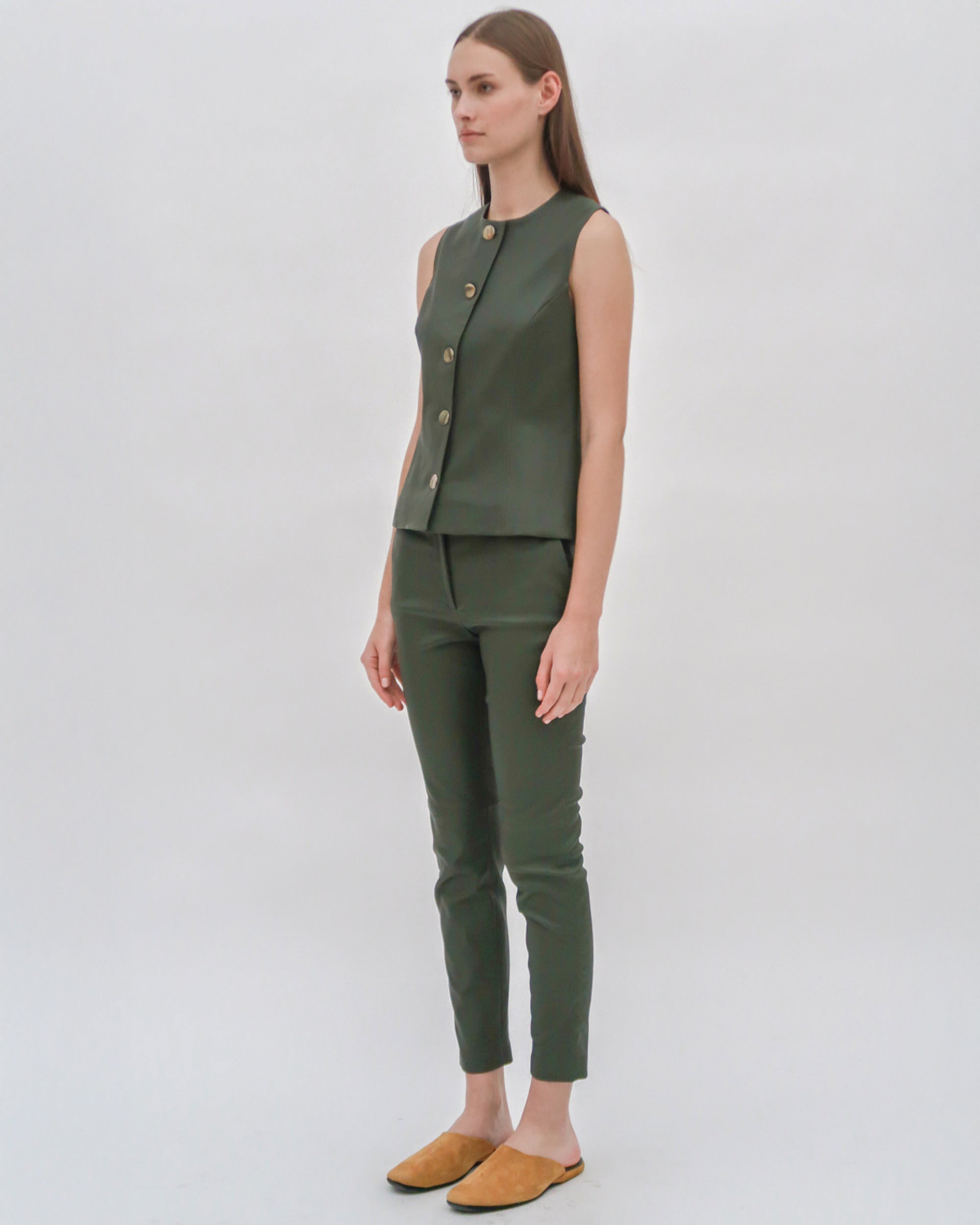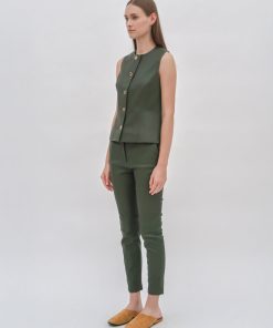 Rosetta Getty Women’s Sleeveless Button Front Top | Forest