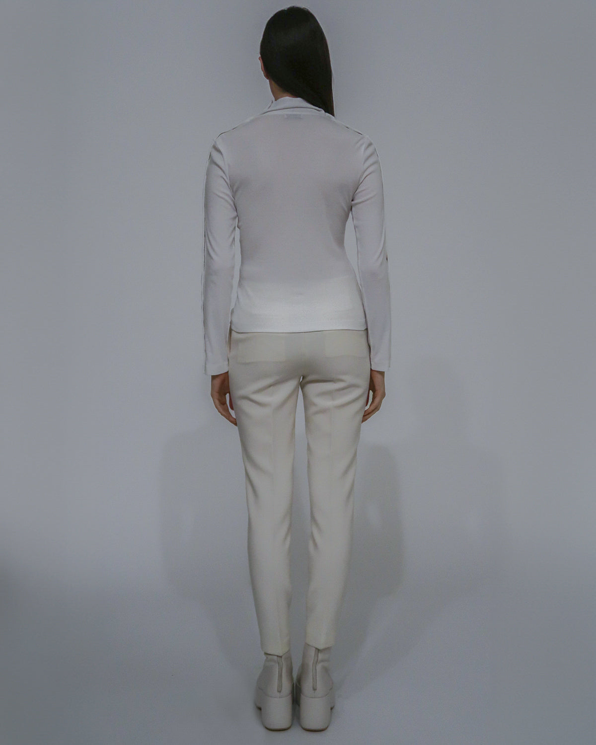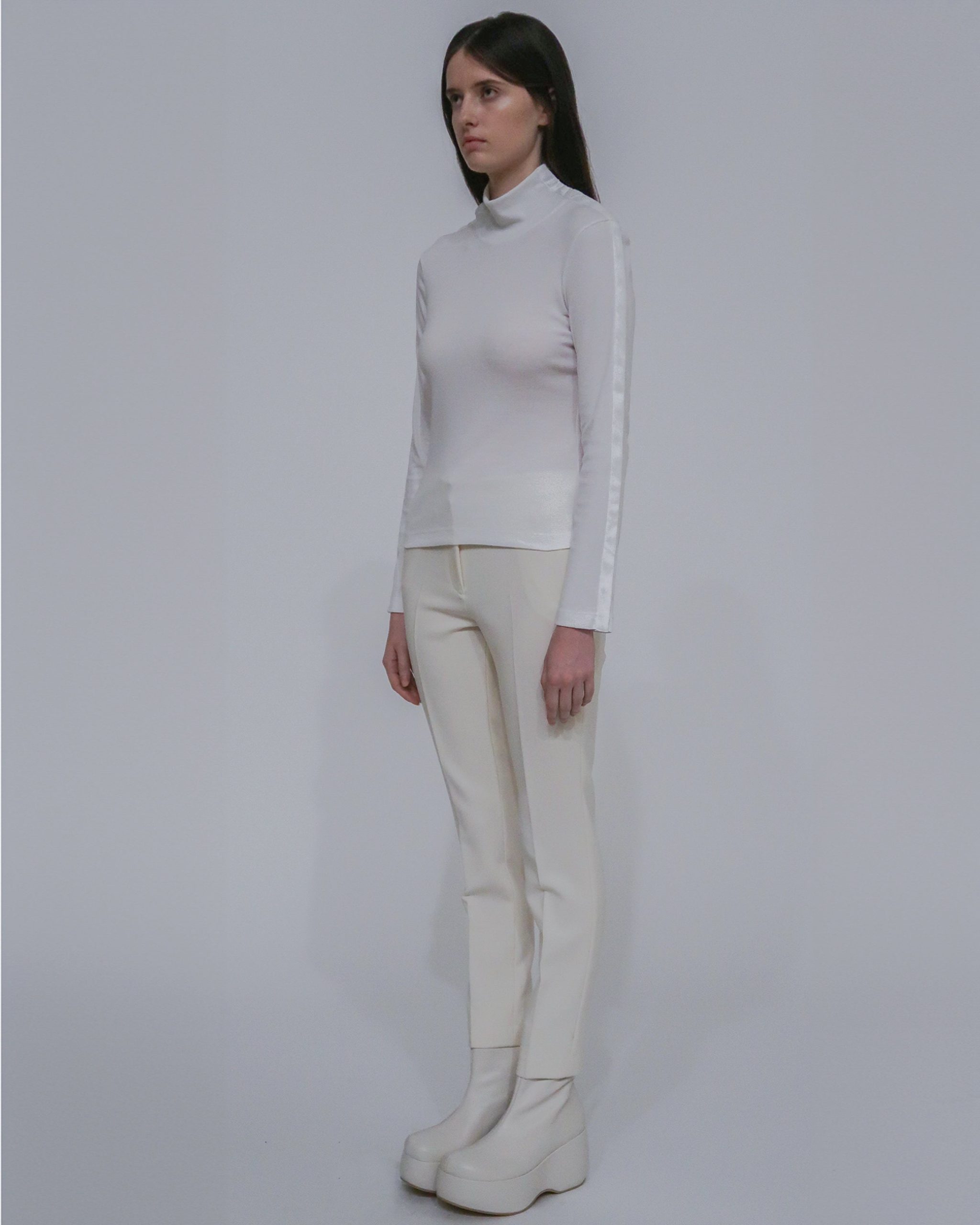 Crafted of our Mercerized Cotton Jersey, a soft and fluid fabric that gently hugs the silhouette, this turtleneck top features a surprising twist: along each sleeve from the neckline to the cuff is a concealed row of functional snaps. Wear open or closed for additional styling options and to adjust the fit.