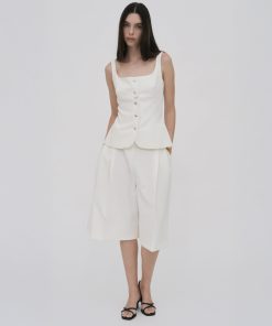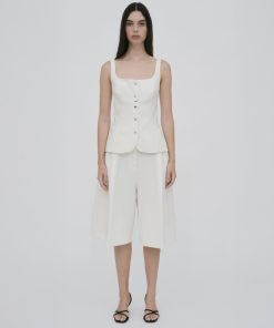 Our latest silhouette in a comprehensive and creative suiting wardrobe, the Tailored Cross-Front Top extracts the defining characteristics of tailoring and imagines them anew. Crafted of Wool Viscose Twill Suiting, the modern style is cut in a longer fit that crosses at the bust.