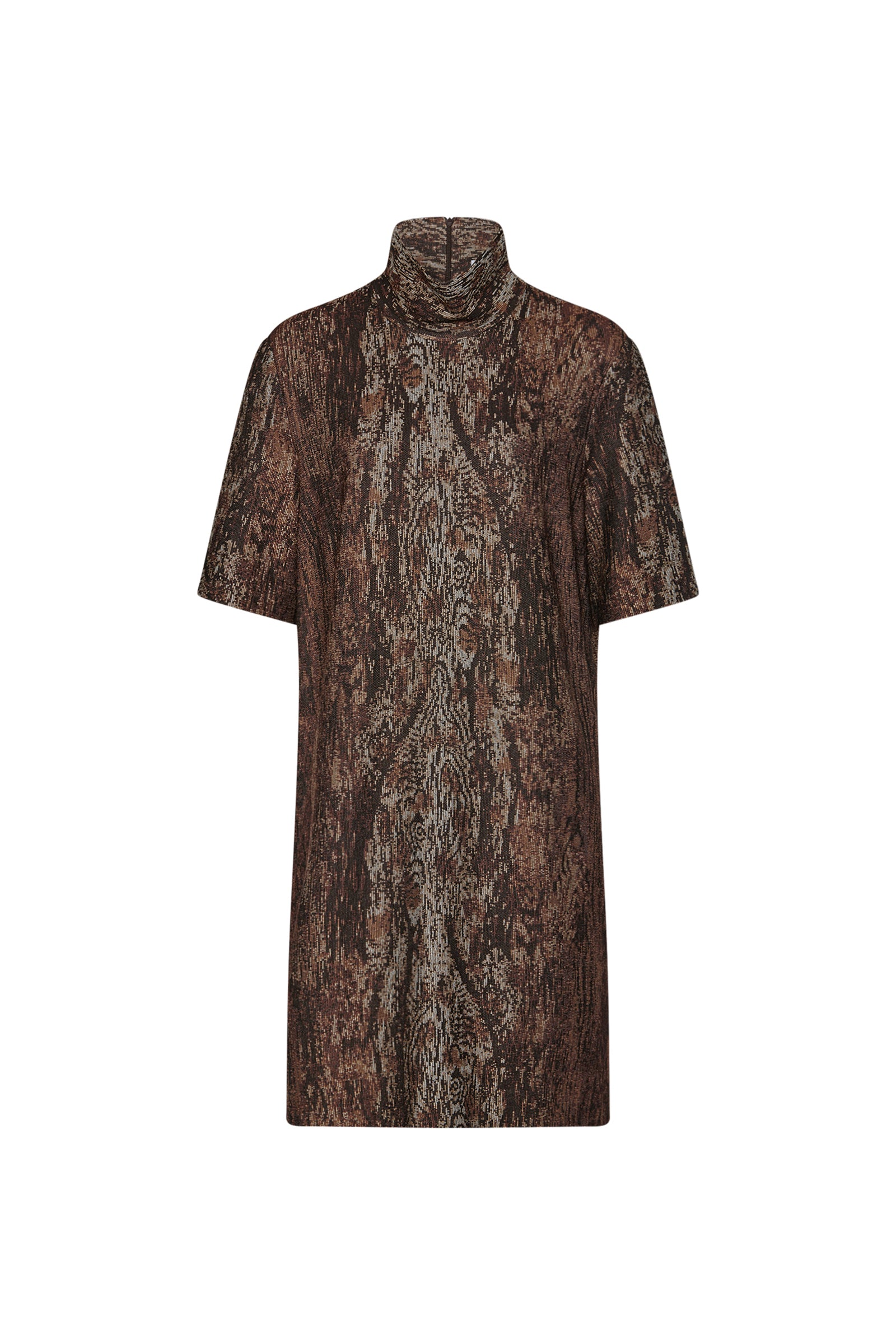 Cut to a classic shift silhouette, this new addition to the Interlock Jacquard wardrobe offers styling worn on its own or layered. The seasonal Woodgrain pattern lends intricacy to the otherwise relaxed silhouette, topped with a loose turtleneck.